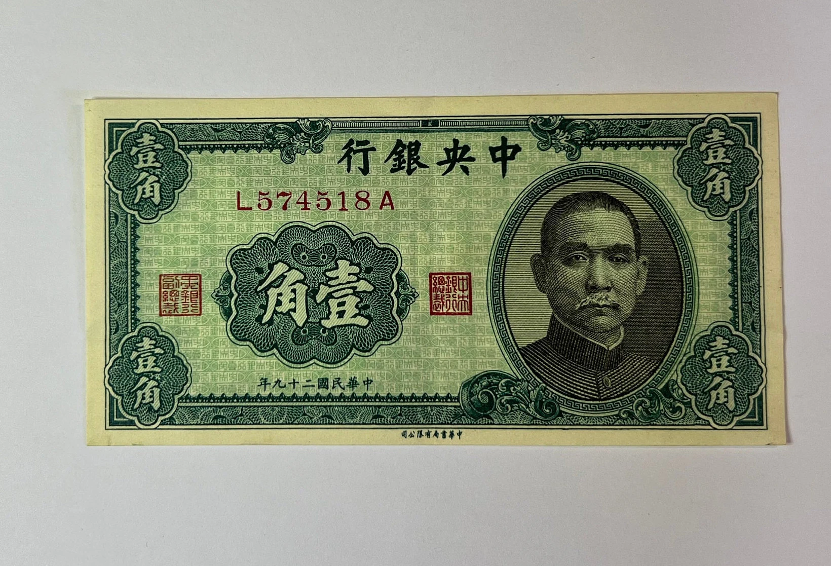 This small banknote is virtually uncirculated condition, with no folds, creases, stains, or tears. Daddy was a payroll sergeant in the American army in Shanghai- he retained these notes when they were decommissioned during the occupation of China.