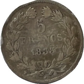 Coin pictured is the actual coin you will receive. Coinsnap rated F condition. RARE Five French Franc coin minted in Lille. Contains 25 Grams (. 7234 Troy oz) of actual silver content. The face value of 5 Francs (French) is fully backed by the French government.