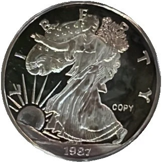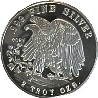 Here’s the story on this one… my brother bought silver and gold as investments during the 80’s, and coins were a convenient shape for him to hoard and hide. He bought this from a precious metals dealer somewhere, who had melted down scrap silver and wanted to mold it into something interesting, so he made a replica of a 1947 Half Dollar. Let me be clear- this was NEVER a coin that was minted or circulated by the US government, and is much larger (almost 2″ diameter) and heavier (2 oz) than your average pocket change. It has no monetary value, and is clearly stamped “COPY” to indicate that. It may be valuable due to its silver content, and it may be collectable due to its uniqueness, but it has no numismatic value.