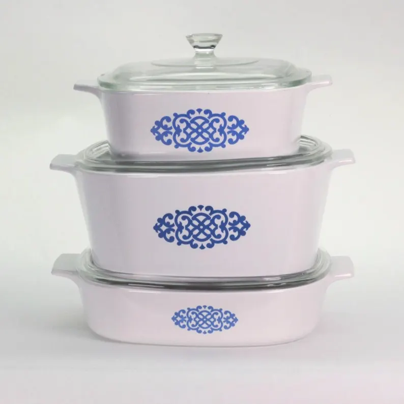 Each piece is part of Corning’s A-series and features crisp blue artwork on a classic white base, paired with a clear glass lid. Choose from 3 sizes — select one or bundle multiples for a complete look!