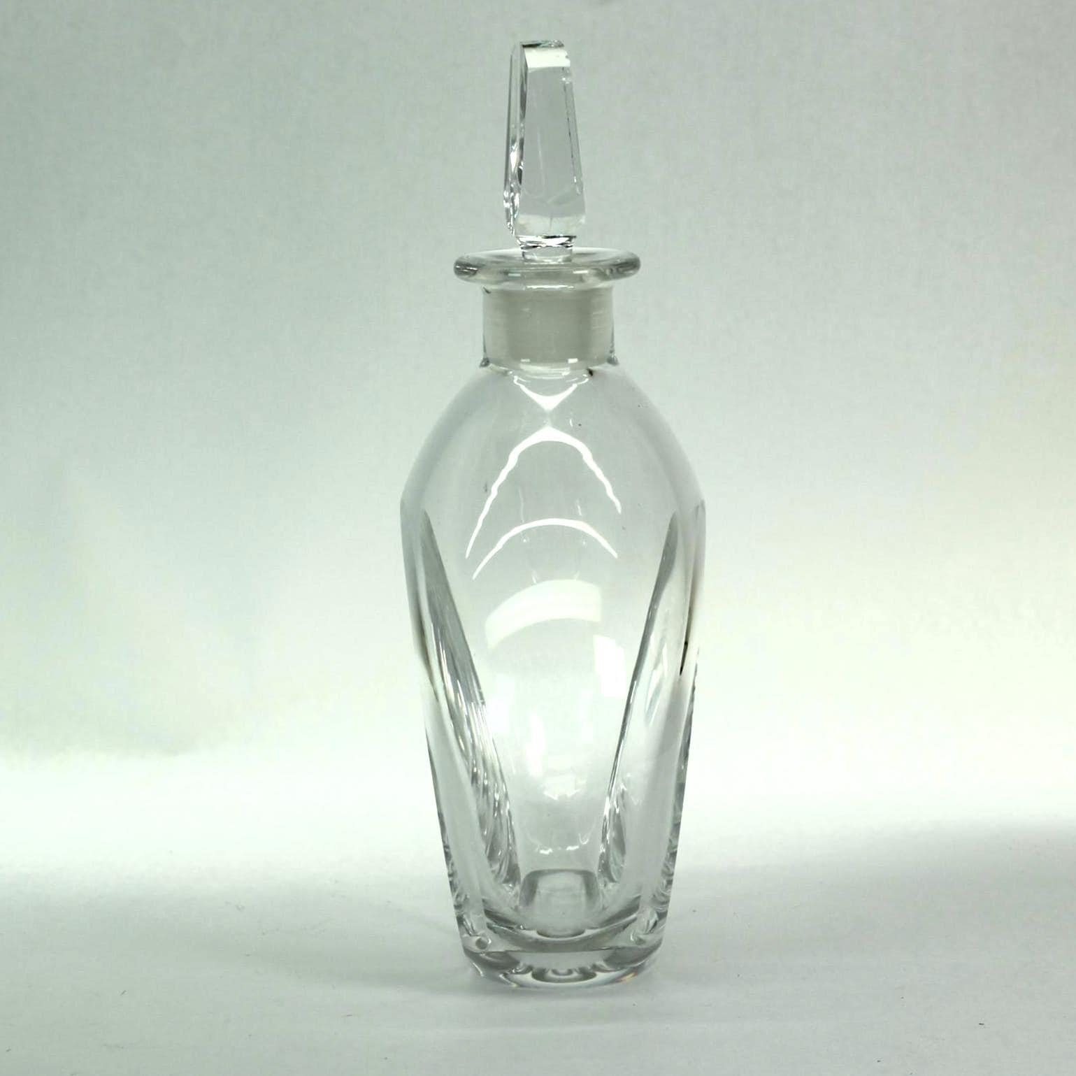Elegant Scandinavian modern crystal decanter by Orrefors of Sweden, known worldwide for exceptional glass artistry.