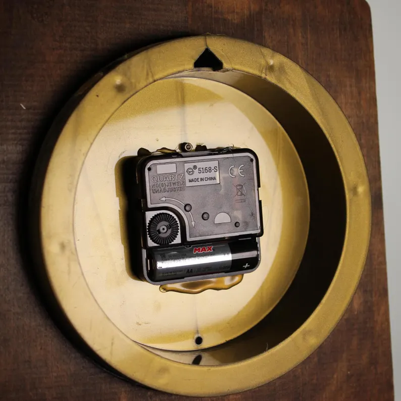 Originally battery-operated, the original movement gave out over time. It’s been replaced with a modern quartz clock movement, so it’s fully functional and keeps time accurately — just pop in a single AA battery (included!).