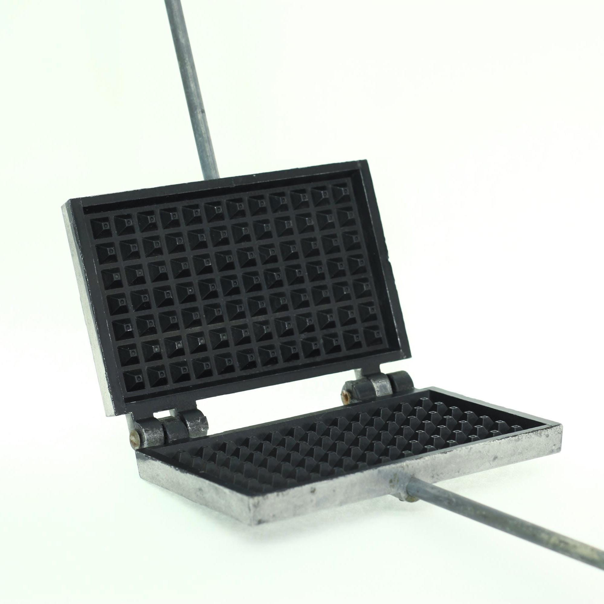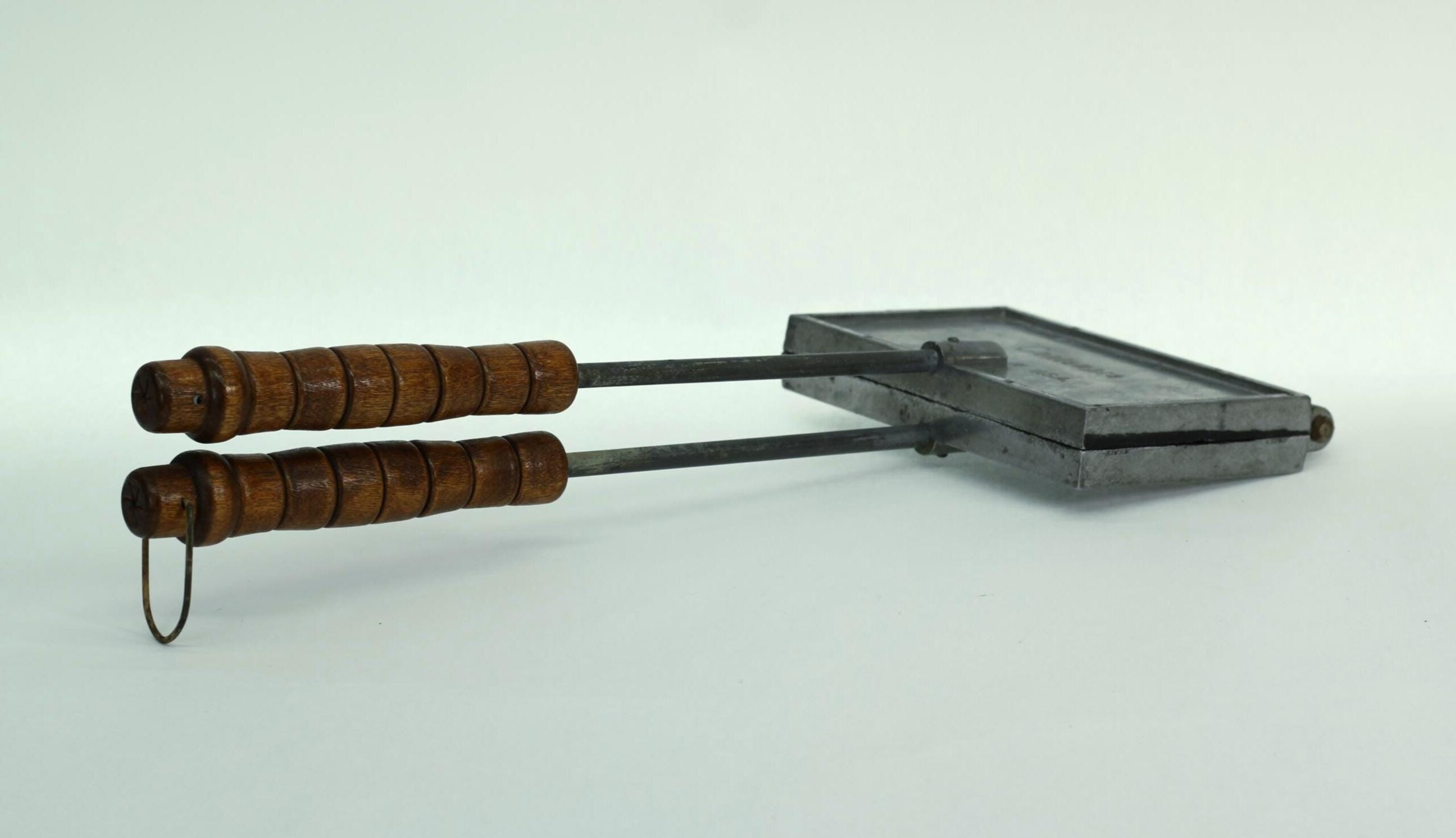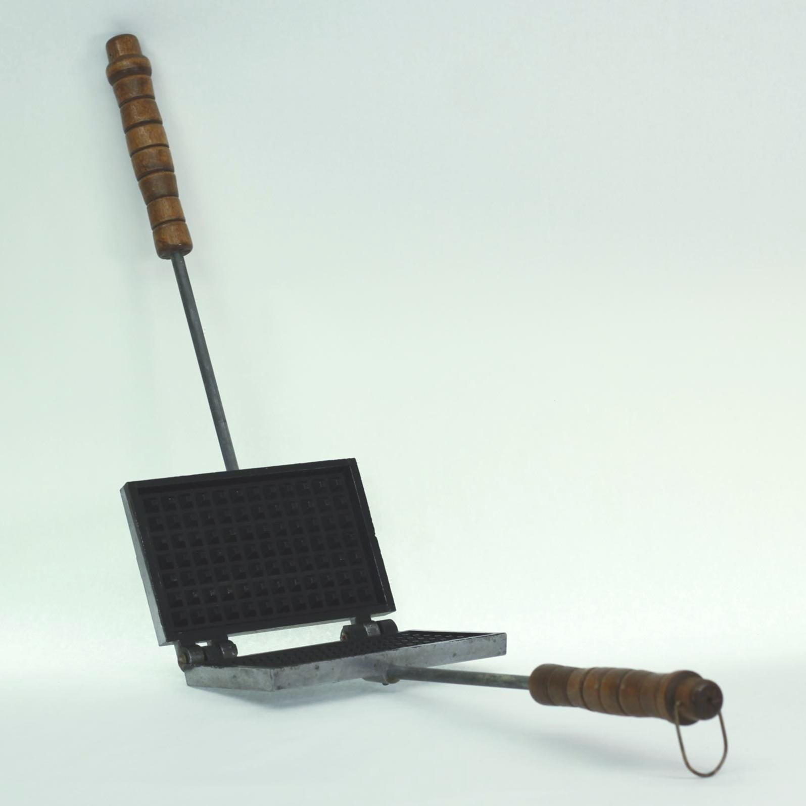 Before electric waffle makers became common, tools like this were a simple way to cook waffles at the stove or over an open fire. The thin-grid pattern creates crisp, classic waffles, perfect for camp breakfasts or nostalgic kitchen displays.