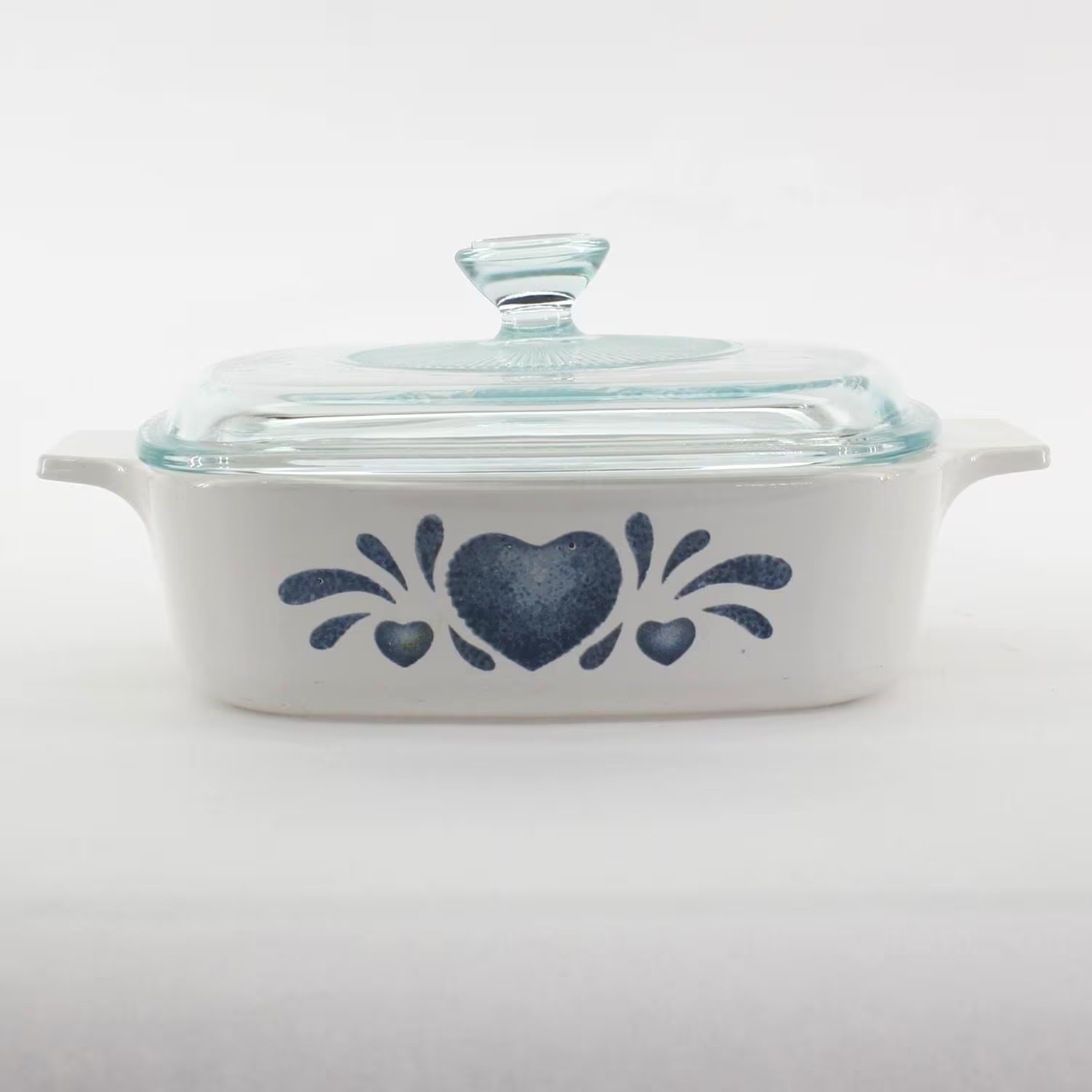 Hard to find and easy to love! This sweet Corning Ware casserole features the Blue Heart pattern — a stylized spin on the classic cornflower motif, produced for just one year in 1998. With its country-chic charm and limited run, it’s a gem for collectors and home chefs alike. 💙