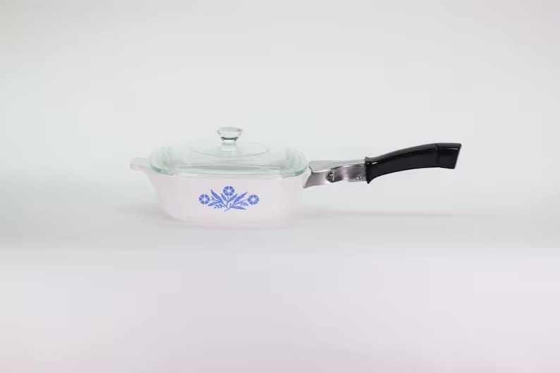 ✨ Compact and versatile, this Corning Ware Blue Cornflower P-1-B 1-quart saucepan is perfect for stovetop-to-oven dishes, sauces, reheating, and smaller servings. Includes original Pyrex lid and detachable black handle for easy stovetop use and serving.