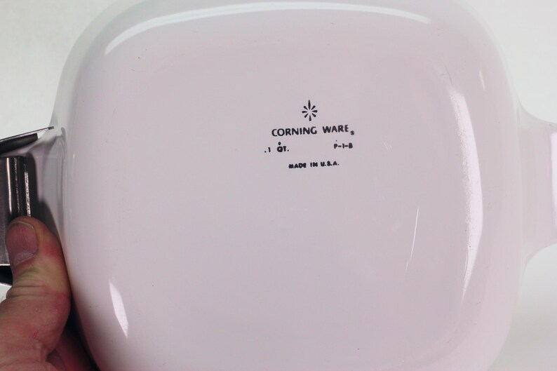 📜 This is an early P-series Corning Ware piece with the original slope-sided design, produced before the later straight-sided A-series. Collectors prize the P-series for its classic mid-century shape, heavier weight, and durability.