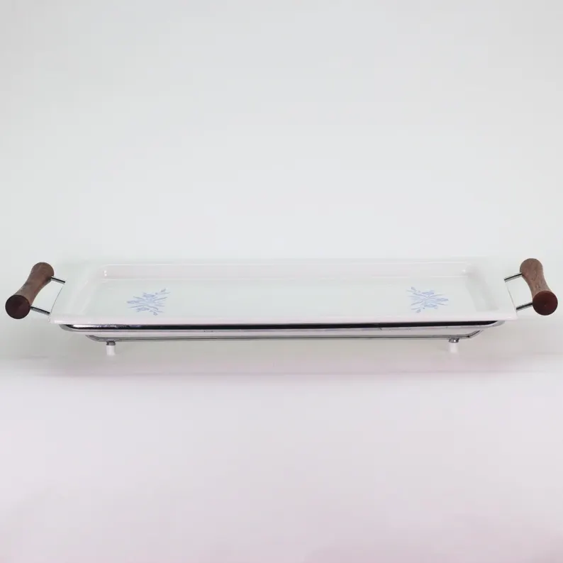 📏 Size: Tray measures approx. 12¾” L (without handles) × 8¾” W × 1″ D. Overall length with stand and handles is approx. 16″.
