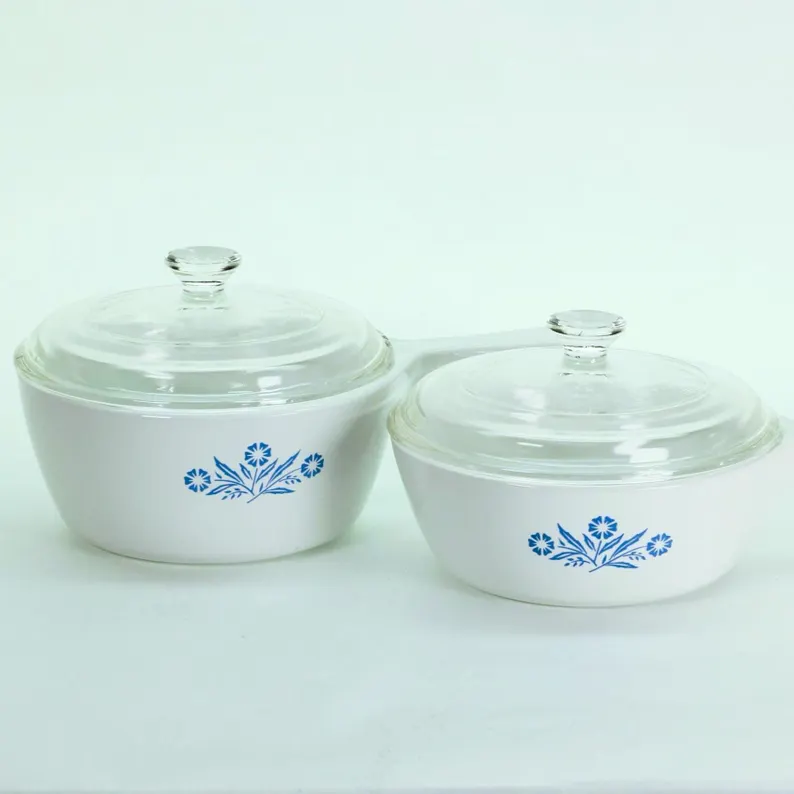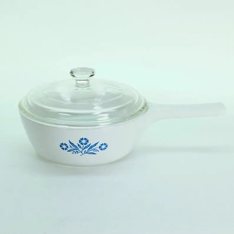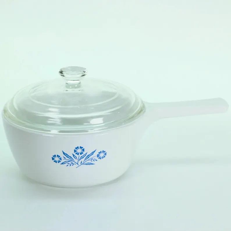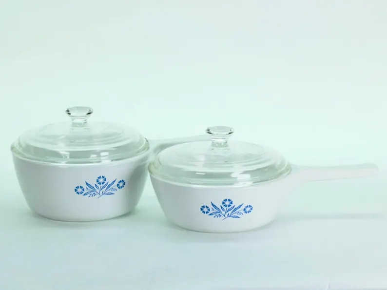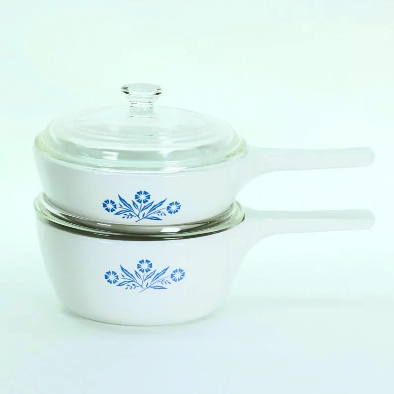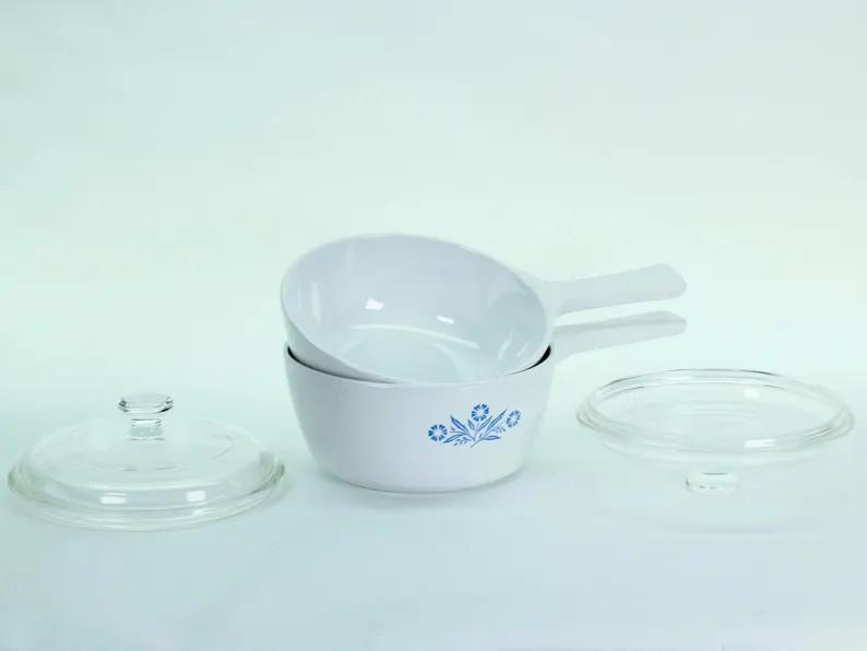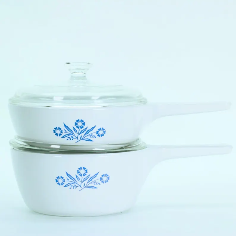 Designed for stovetop, oven, microwave, and fridge-to-table use. Both saucepans include their original clear Pyrex lids, giving you complete sets ready for cooking, serving, or display.