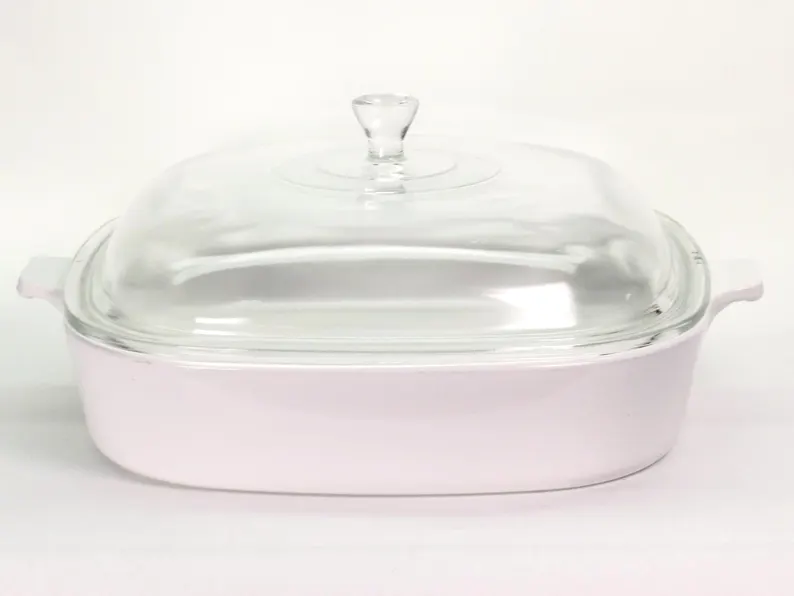 🎨 Color: Classic white with clear domed Pyrex lid