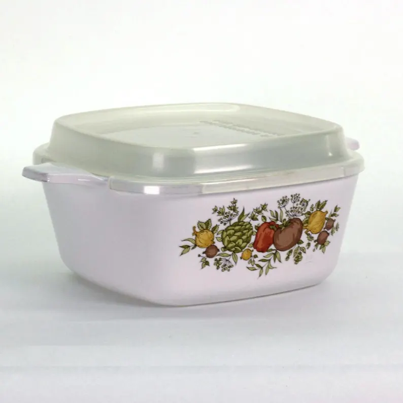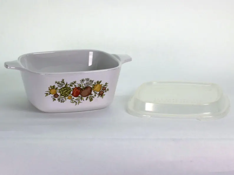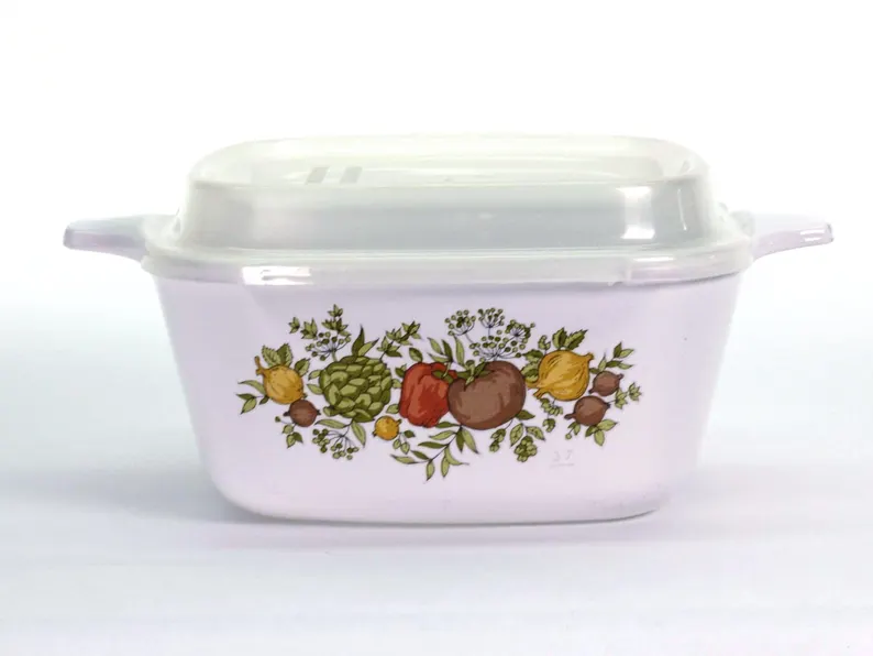 This charming little Spice of Life Corning Ware pan brings big flavor in a small footprint! At just 2-3/4 cup capacity, it’s ideal for melting butter, heating single servings, or storing leftovers in vintage style. Topped with its original plastic lid, this petite pan is as practical as it is collectible.