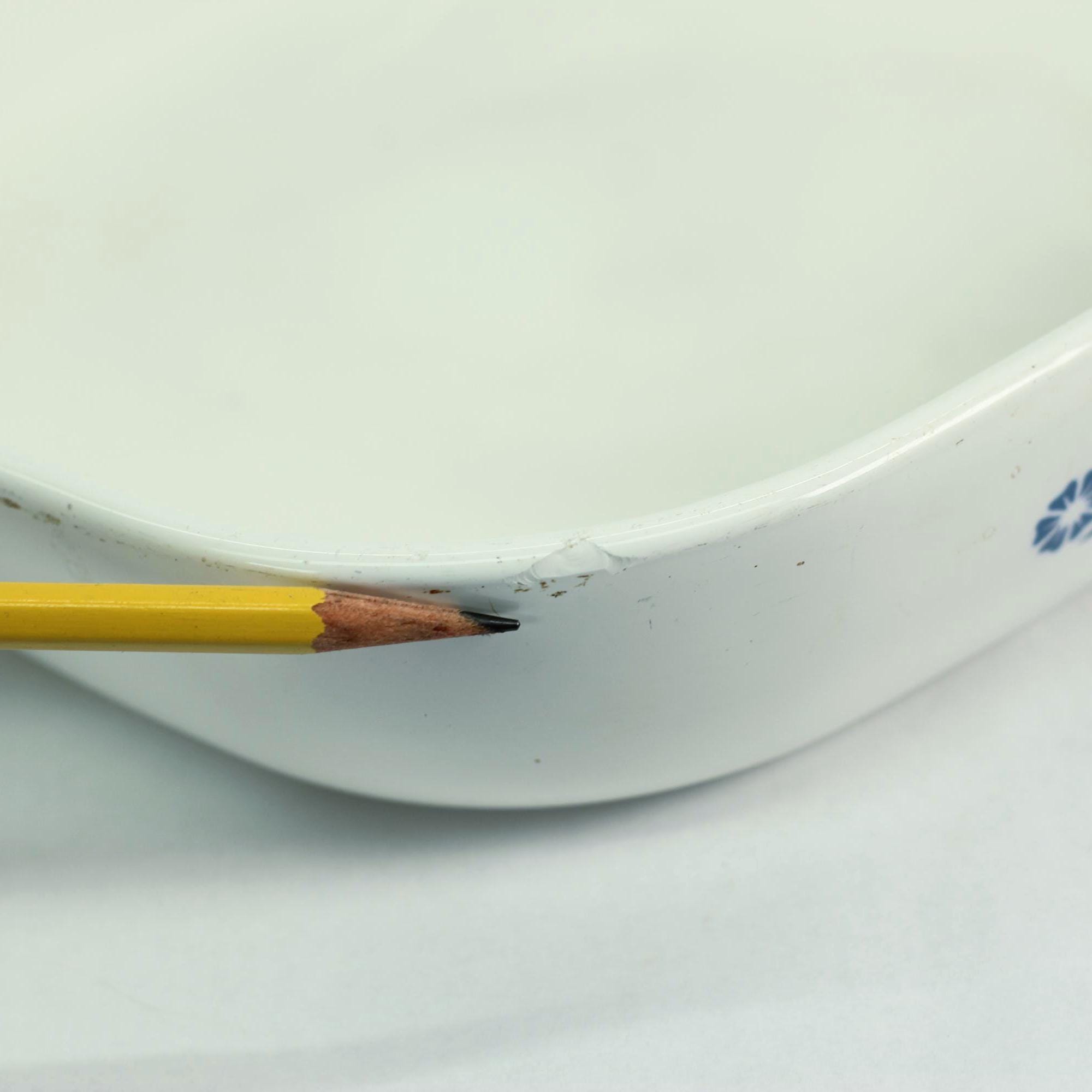 • One small rim chip on the edge (shown in photos with pencil for scale)