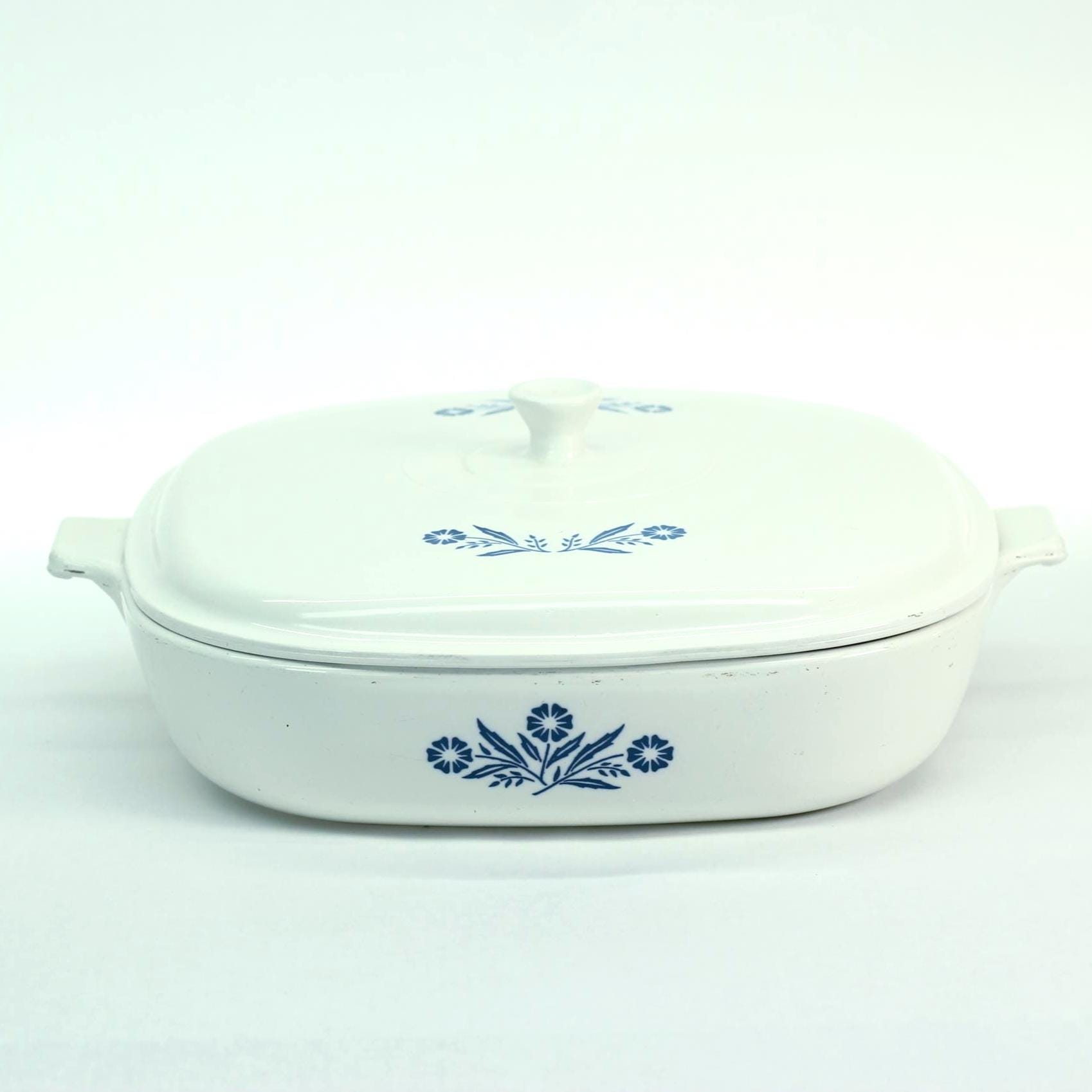 The form was originally marketed as a 10-inch skillet, reflecting Corning’s early vision that Pyroceram cookware could move seamlessly from stovetop to oven to table. Today, many cooks enjoy using this versatile piece as a covered casserole, gratin dish, or buffet server.