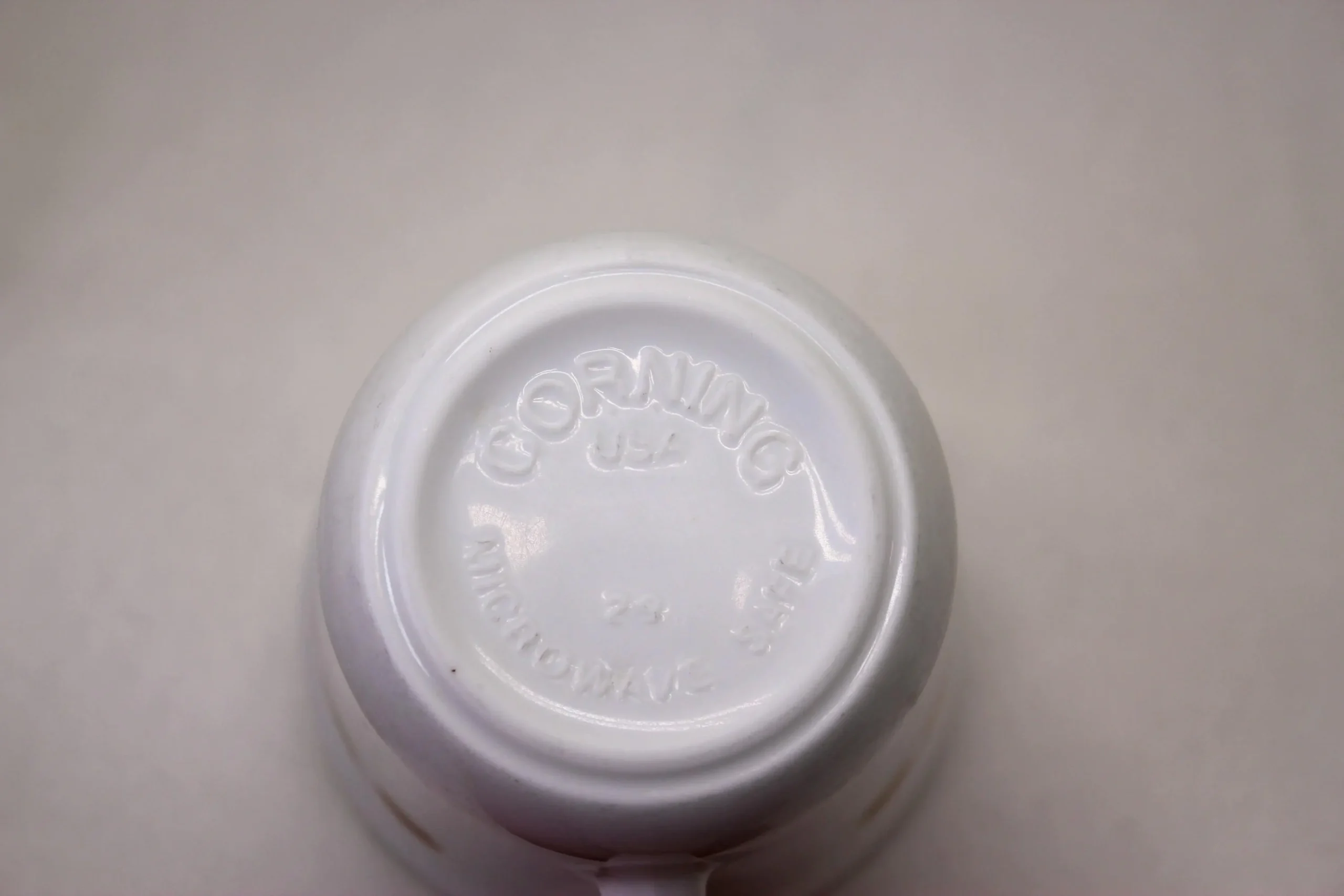 These vintage CorningWare mugs in the Butterfly Gold pattern reflect the versatility of Corning’s product line, as well as its interesting use of similar patterns across different lines of products. More experienced collectors may correct me if I’m wrong, but I believe these mugs were sold as part of the CorningWare line, not the Corelle line that came out later. I’m basing this on the bottom stamp (no mention of Corelle) as well as the fact that these mugs appear opaque, like Corningware, rather than translucent like Corelle. I believe that the Butterfly Gold pattern was applied to both product lines. They are in good condition with no chips or cracks, but there are some slight transfer marks that are common with older CorningWare pieces. Sold as a set only. Shipping included in the continental US.