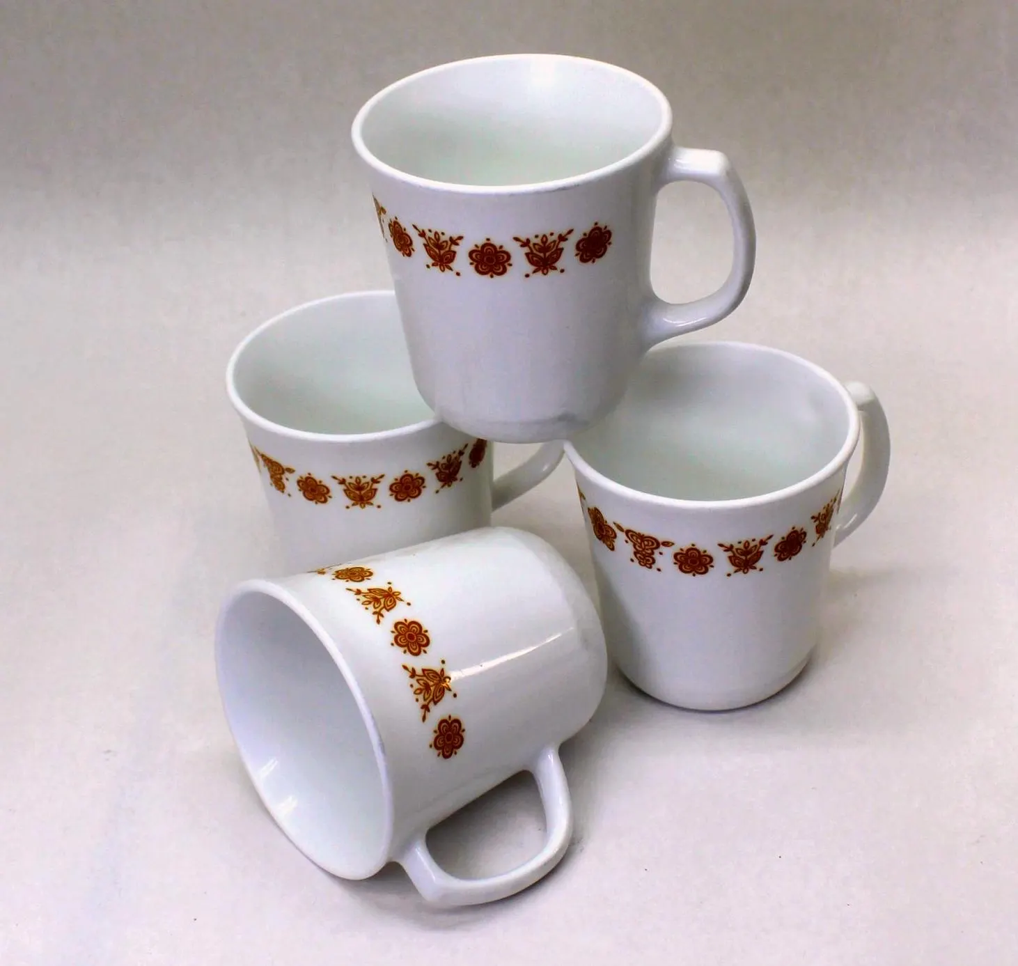 VINTAGE CorningWare Coffee Mugs- Butterfly Gold. Set of 4.