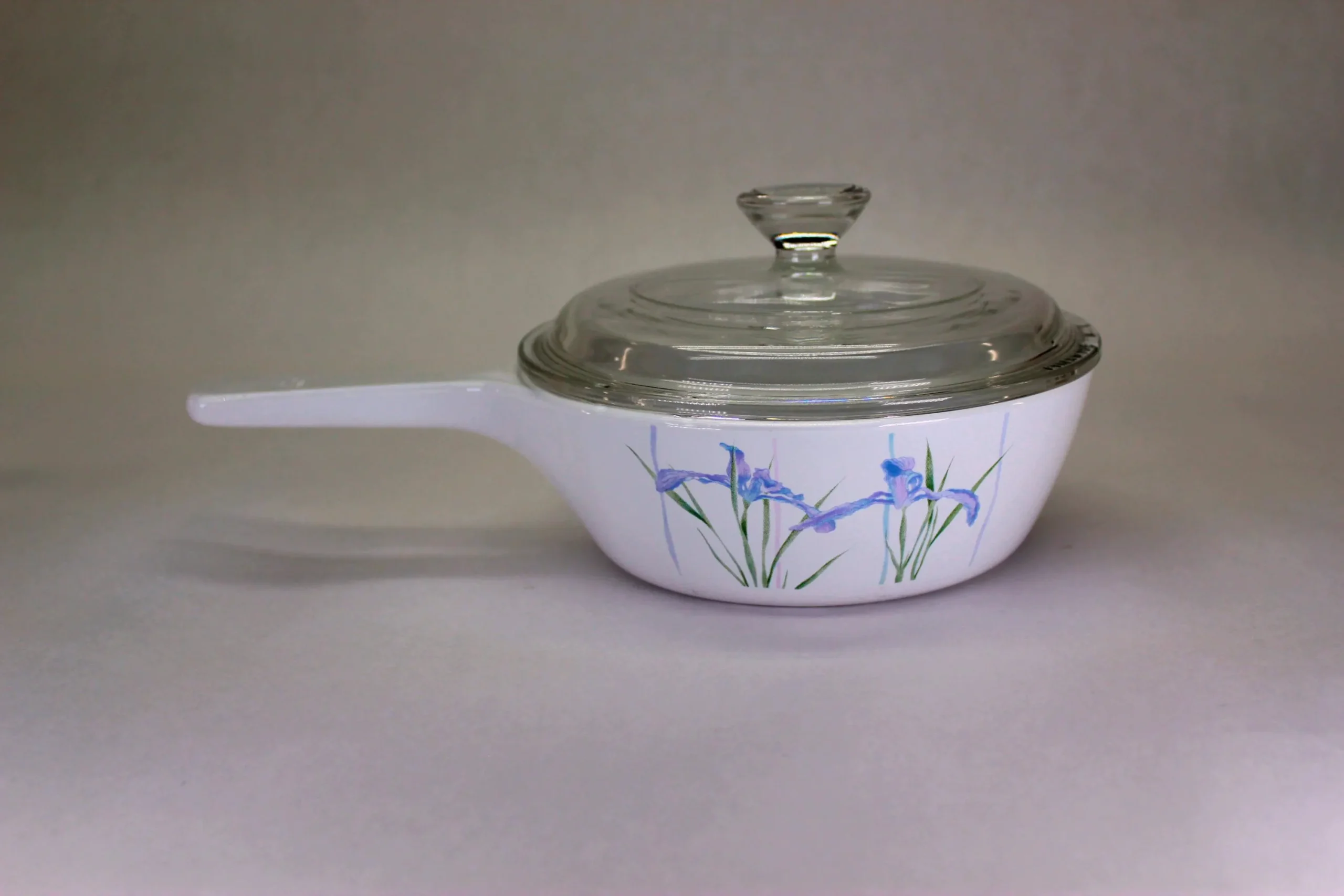 Irises were Momma’s favorite flower, but by the 80’s, when Corning came out with this pattern, already had every size and shape you could imagine! This CorningWare Shadow Iris skillet S81B is a classic piece of cookware that showcases both functionality and aesthetic appeal. Here are some key highlights: