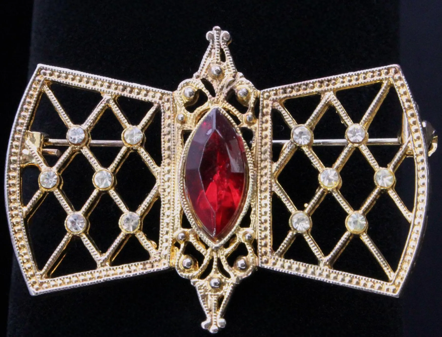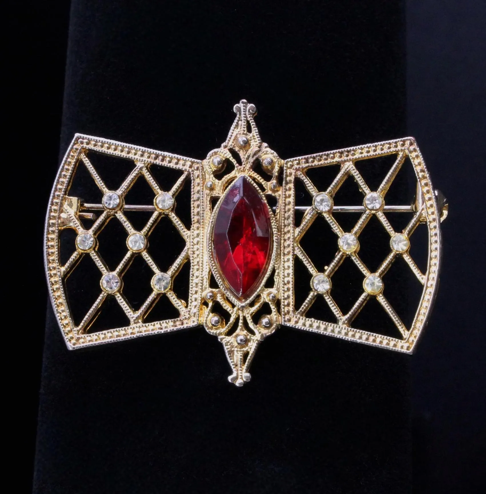 1. Goldtone Bow with Ruby Marquis Rhinestone