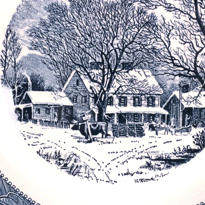 🕰️ Likely produced in the late 1970s, based on the “microwave approved” backstamp. This was one of the last production runs in Royal China’s long-lived Currier & Ives line, made to coordinate with their iconic dinnerware sets.
