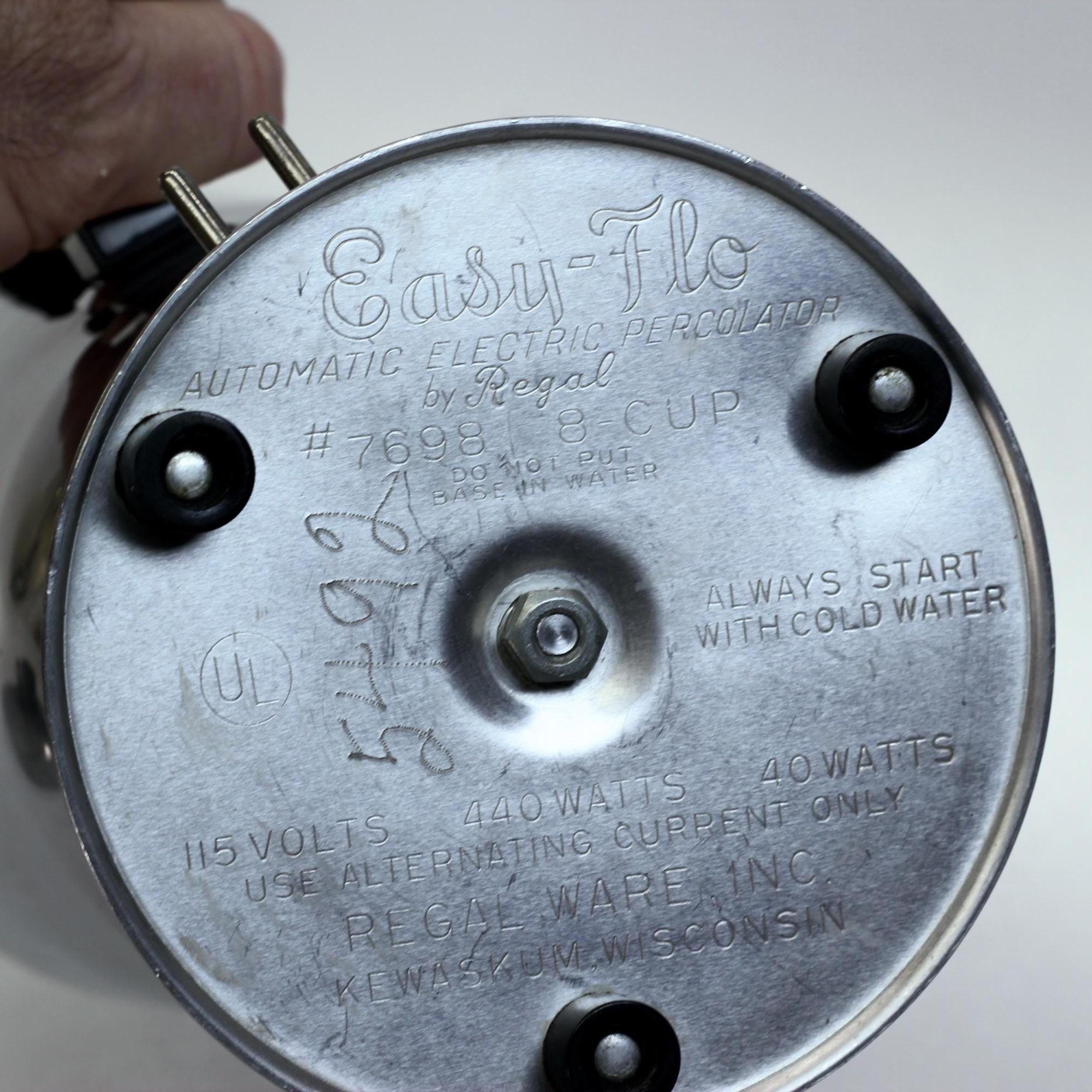 A classic American electric percolator from Regal Wareâs Easy-Flo line, designed for dependable everyday coffee brewing during the mid-century era.