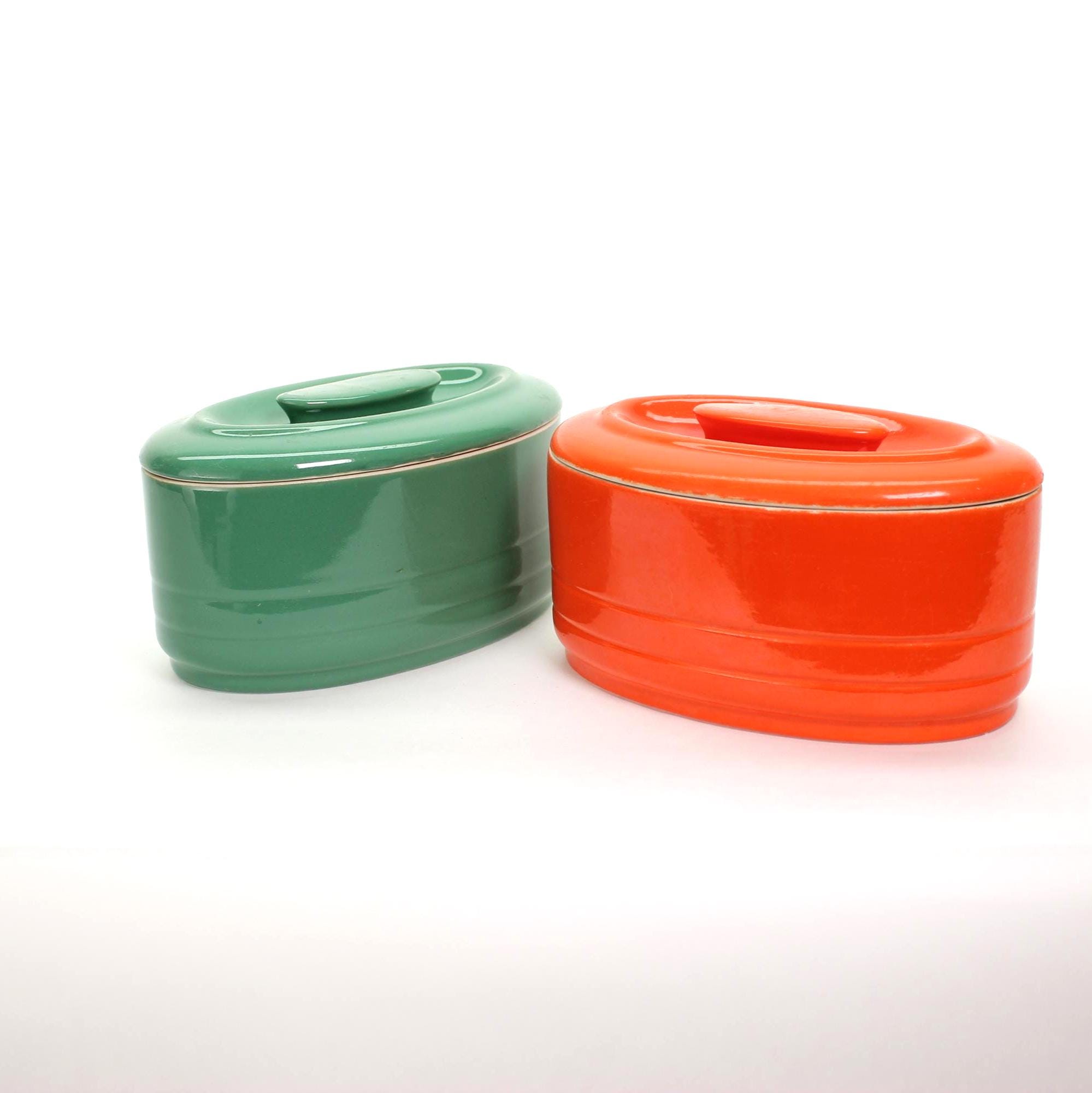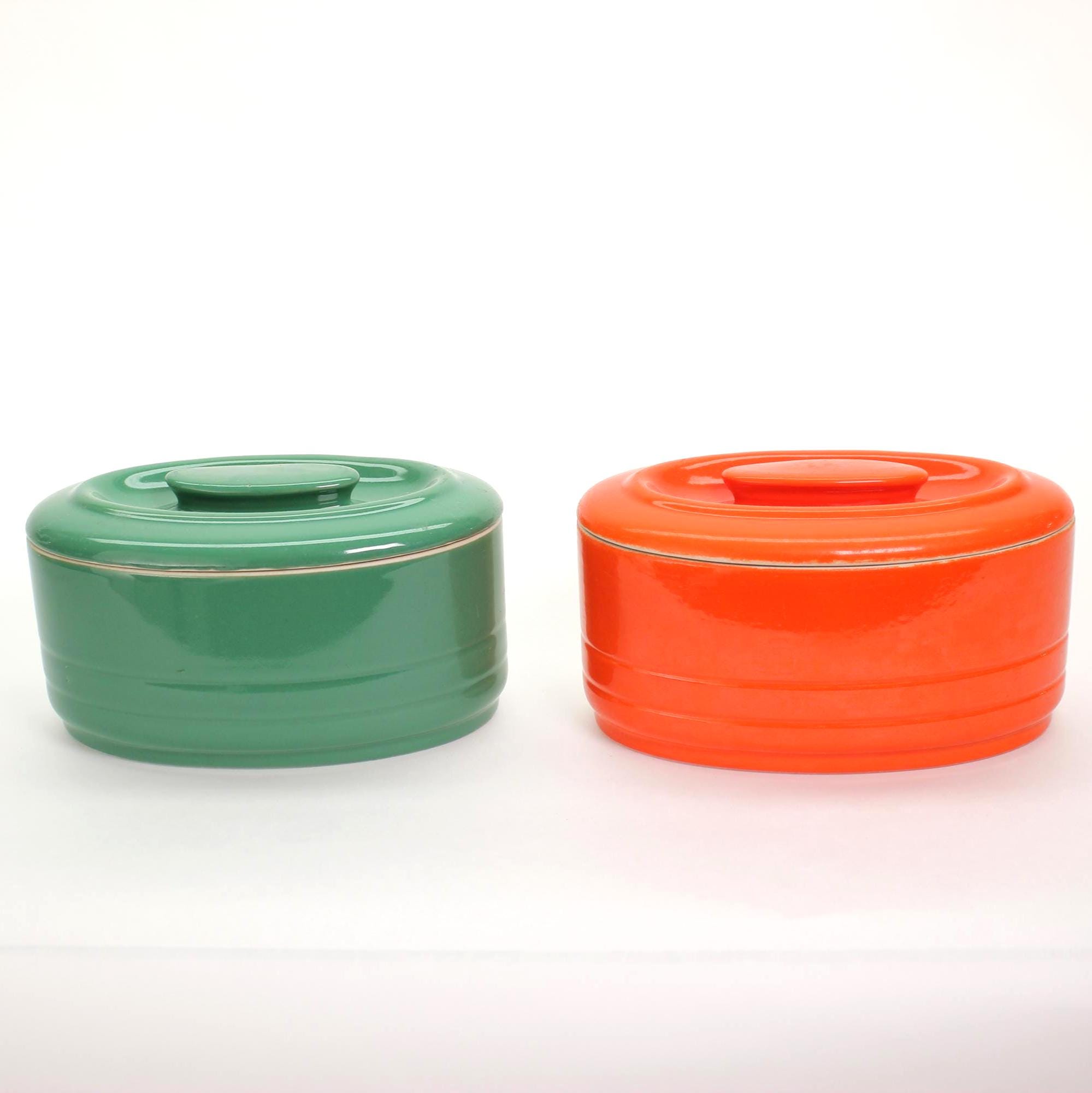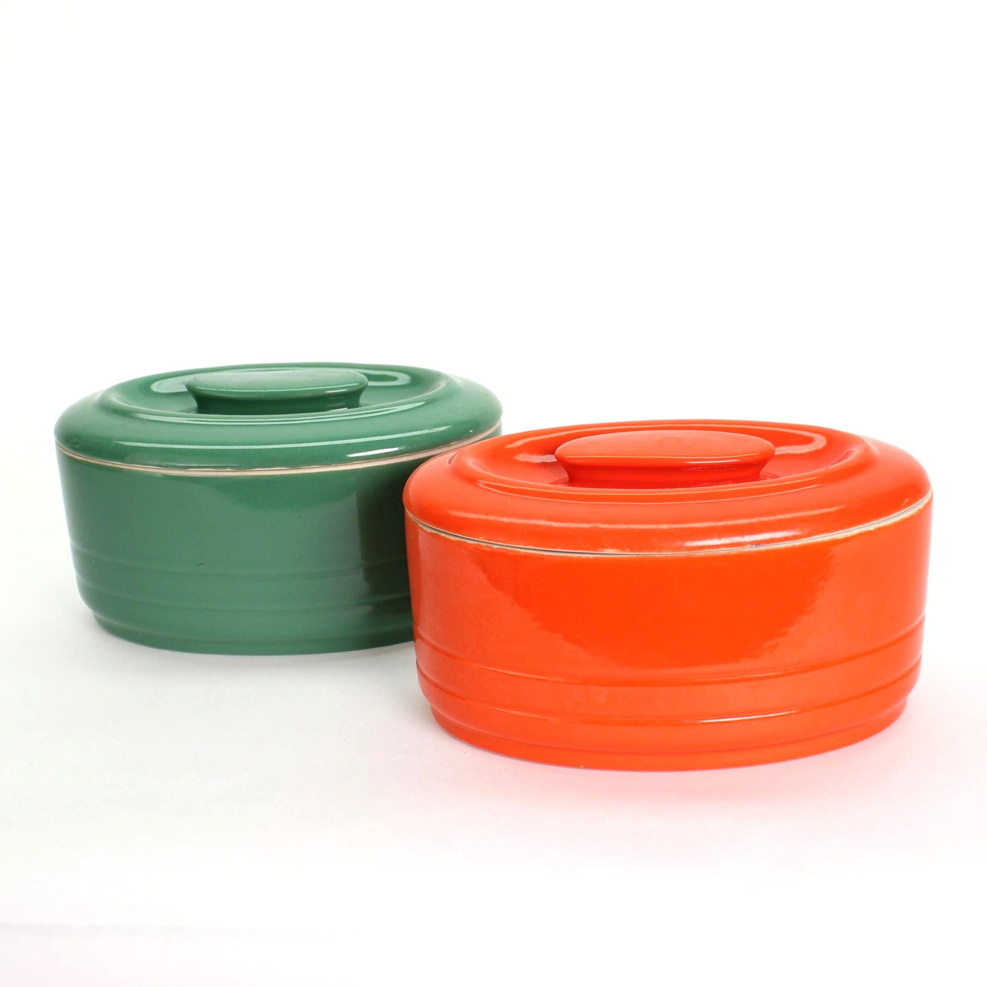 Vintage Hall China Refrigerator Dish: Juniper Green or Bold Orange