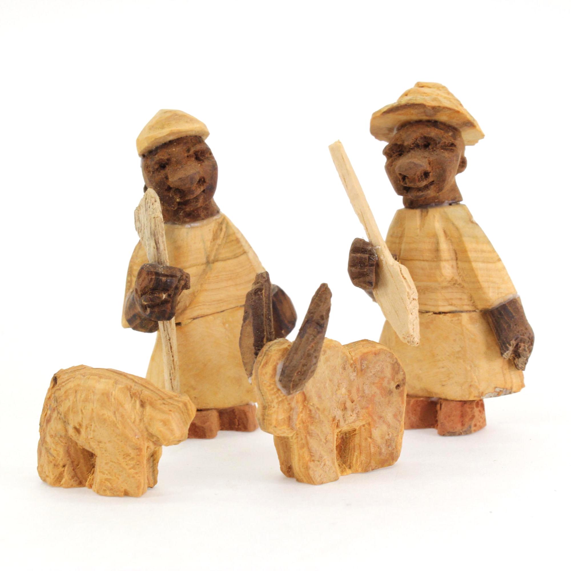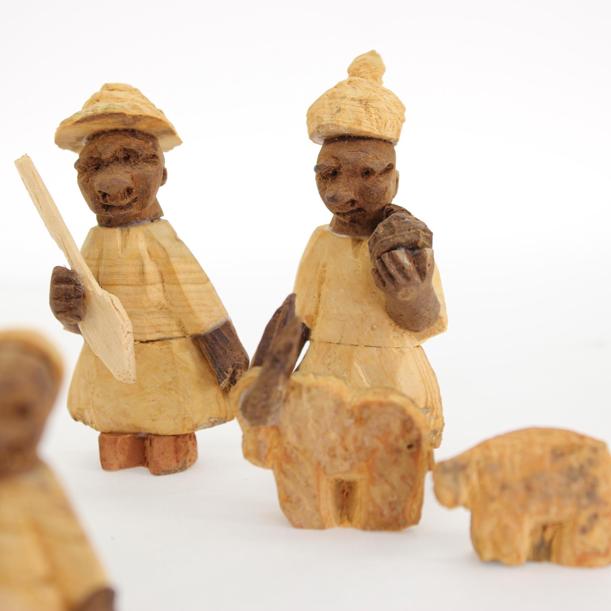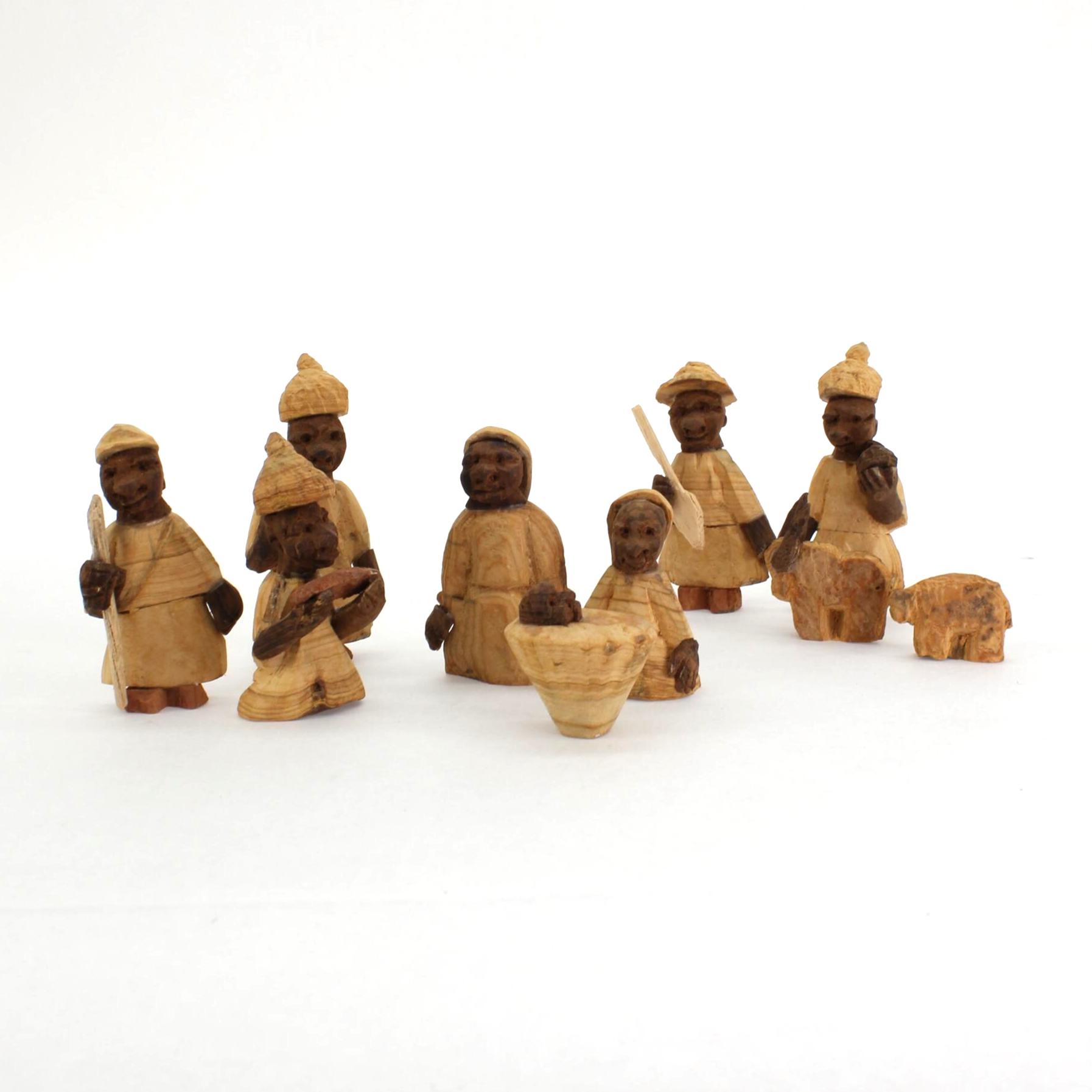 Celebrate the spirit of the season with this charming hand-carved wooden nativity set. Crafted in a rustic folk art style, each figure is lovingly detailed with expressive faces and stylized features, reflecting the artisan’s unique cultural perspective. This miniature set includes 10 figures: Mary, Joseph, Baby Jesus in a manger, three wise men, 2 shepherds, and a flock of two animals — all carved from a light and dark-toned wood that gives the set its natural warmth and contrast.