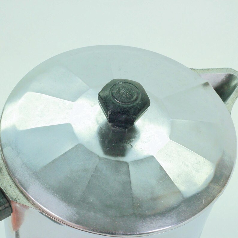 Condition: Polished and presentable. Interior shows pitting from decades of coffee service — common with vintage aluminum and part of its authentic story. Handle and lid are secure, ready for display or light use.