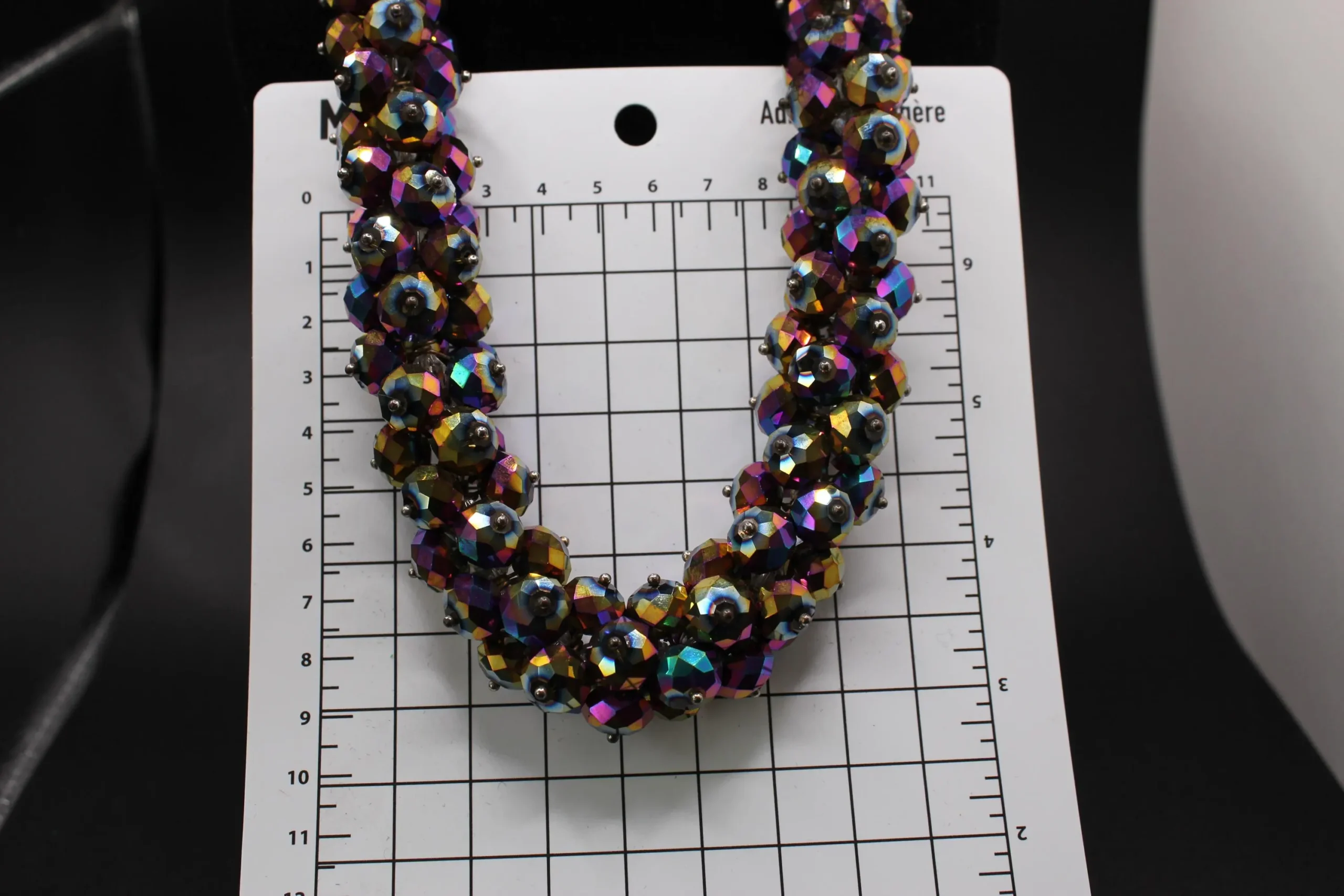 Each bead catches the light with a magical iridescence, creating a luminous effect that elevates any look—perfect for evening wear or adding a touch of vintage drama to your everyday style.