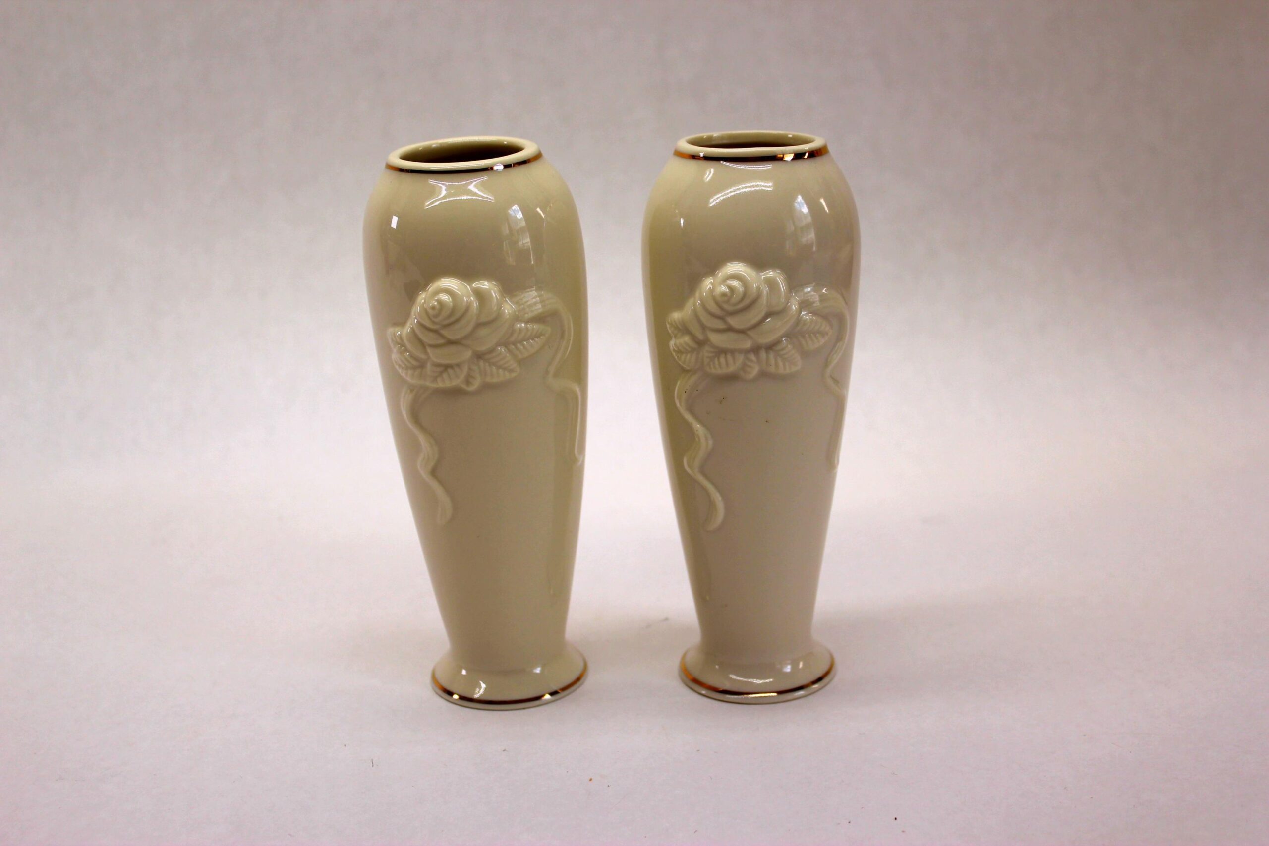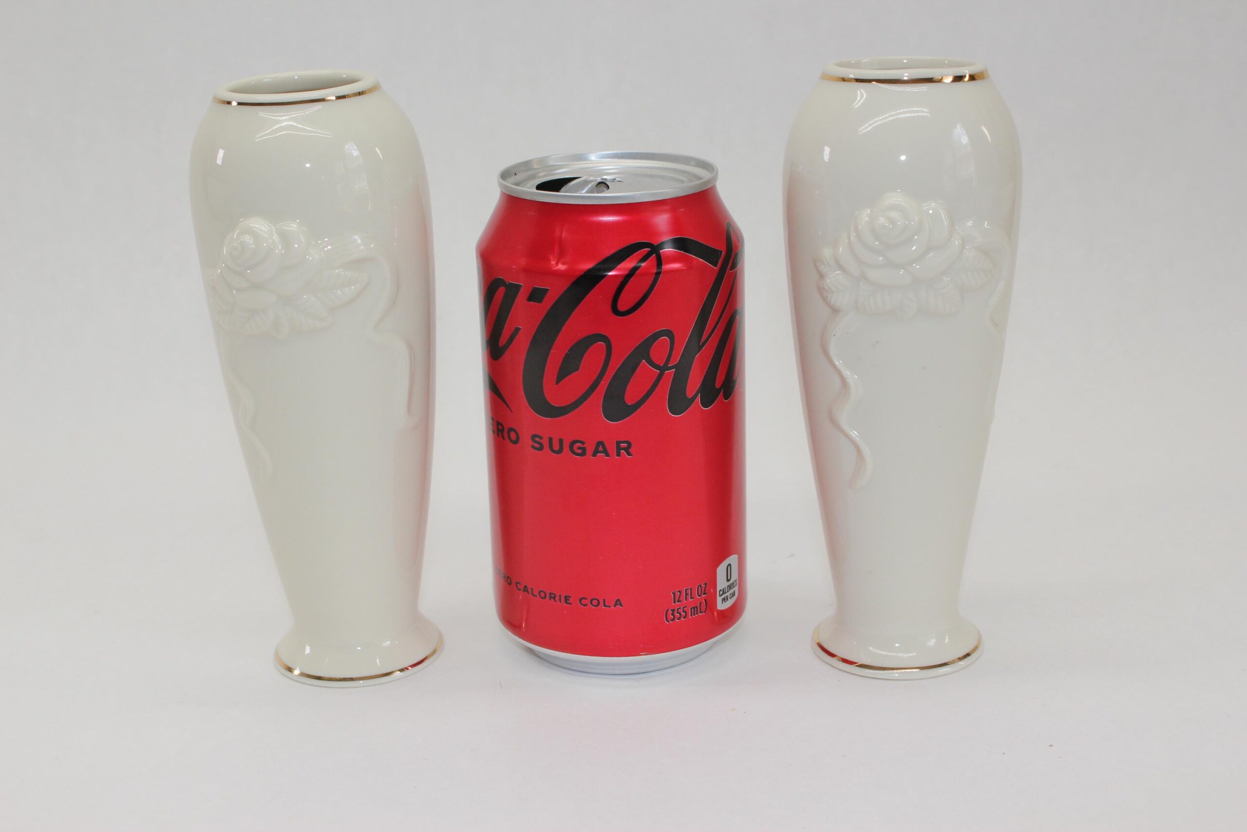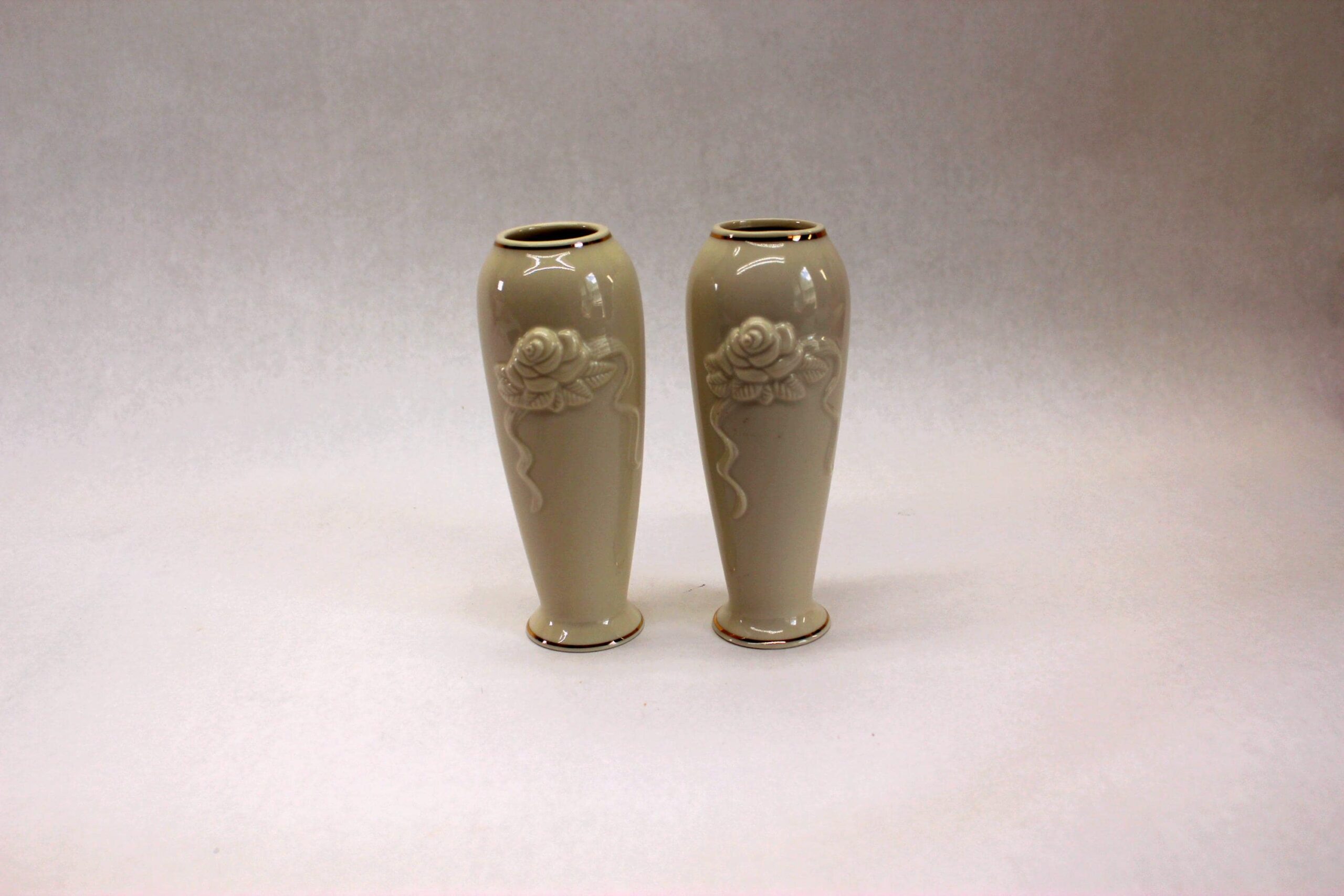 These Lenox bud vases were a ubiquitous bridal gift in the 1980's and 1990's, when department stores had huge china departments with wedding registries and samples of every china pattern known to man! They are a dainty 6" tall. This bride may have gotten 2 of the same vase- but I'm selling them as a pair because I think it gives them more stature! Ships free in the US.