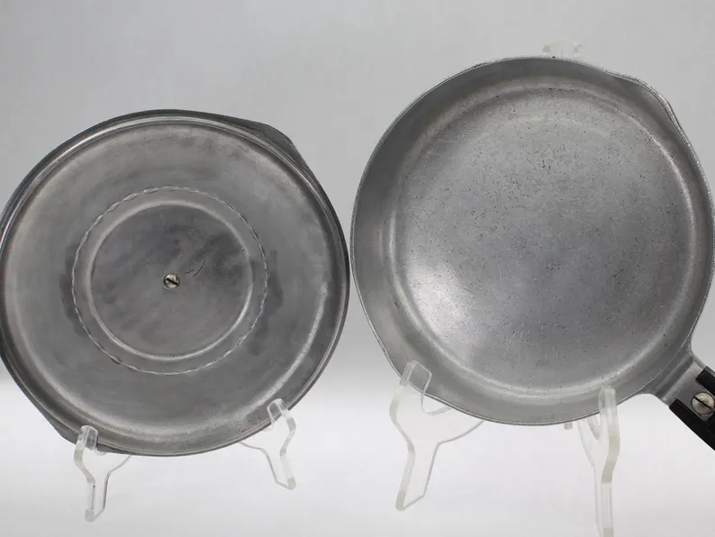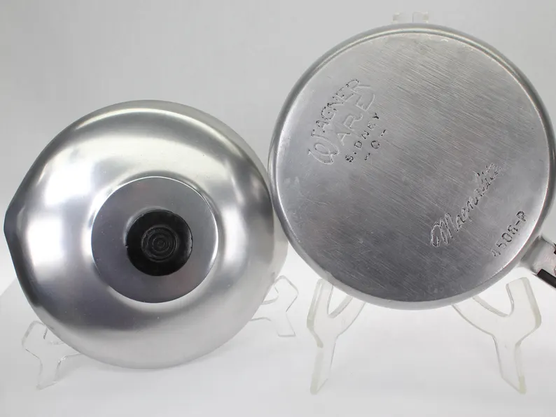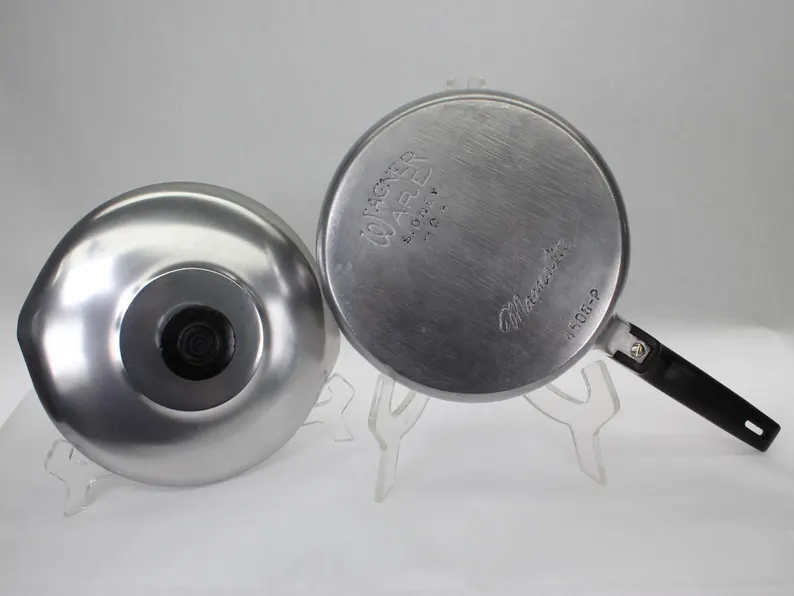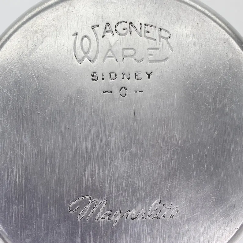 This original Wagner Ware Sidney -O- Magnalite skillet measures 8″ across and 2″ deep, featuring the signature straight sides that make Magnalite skillets so versatile. Perfect for frying, sautéing, or serving straight to the table in classic mid-century style.