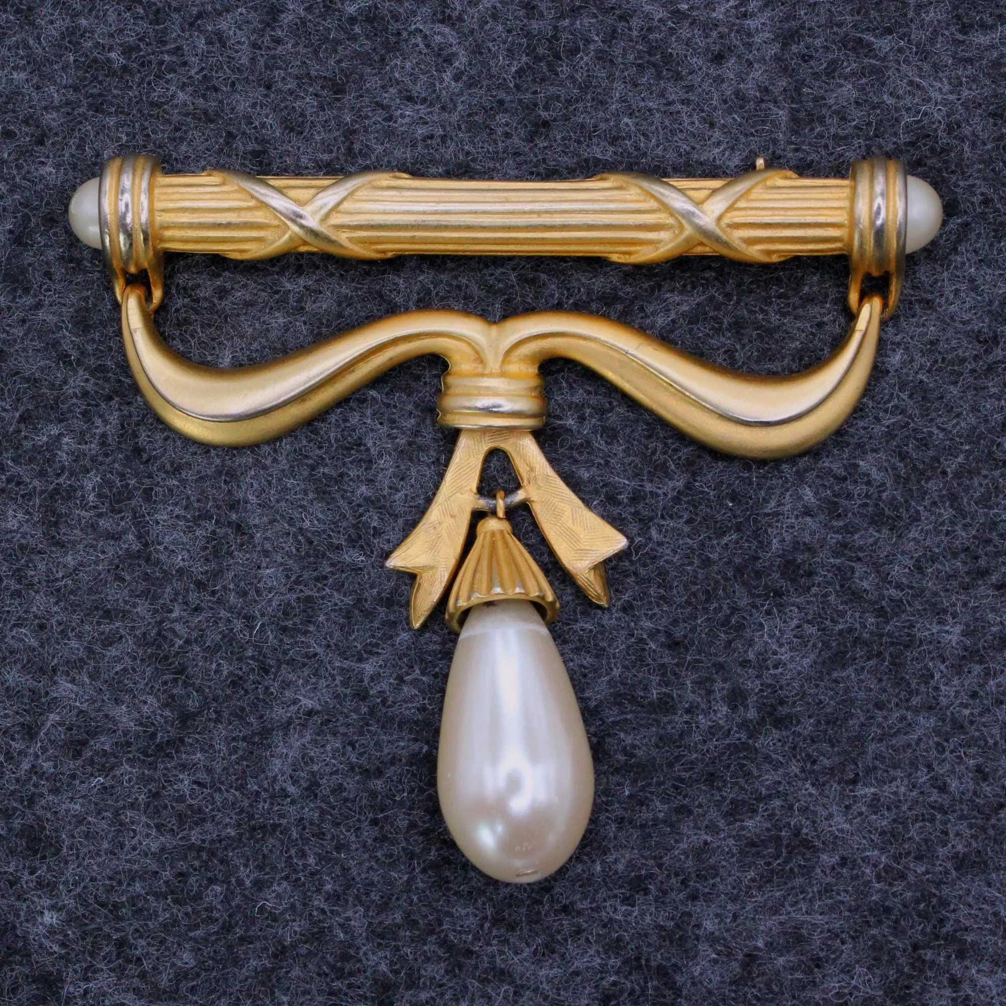 1. Goldtone Ribbon Bow with Red Rhinestone Center