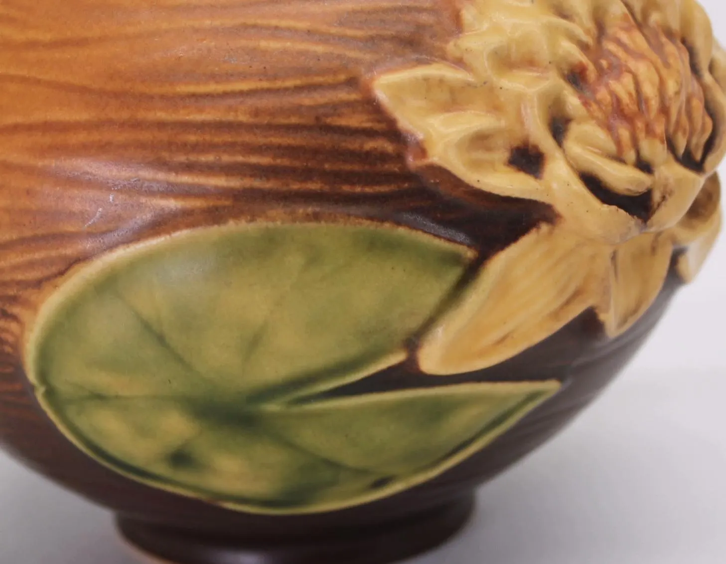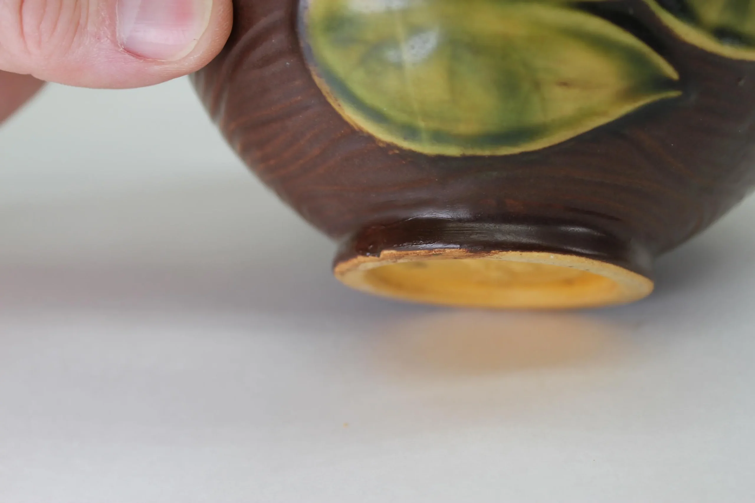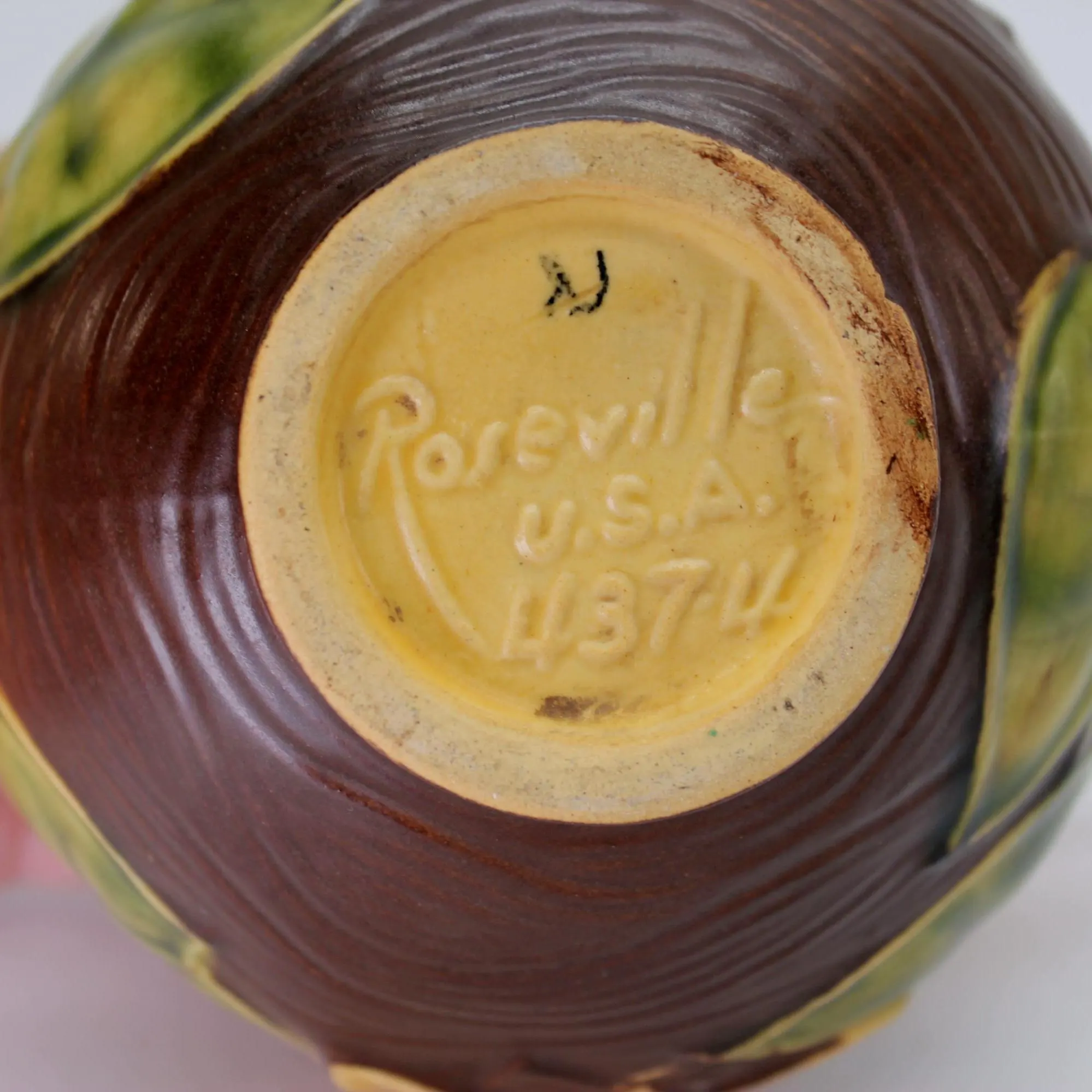 Roseville introduced the Water Lily pattern in 1943, and made and assortment of vases and planters in various shapes and sizes. This beautiful squat vase is about 4″ tall and measures 7.5″ from handle to handle. The details of the lily pads and flowers is amazing, and the glazes are in excellent condition with no crazing or cracks. It appears there may have been one small chip on the foot that was expertly corrected at some point in the past; it is barely visible in the last few photos. Add this piece to your collection today! Ships free in the continental US. Signature Gift Wrap available- please select option at checkout.
