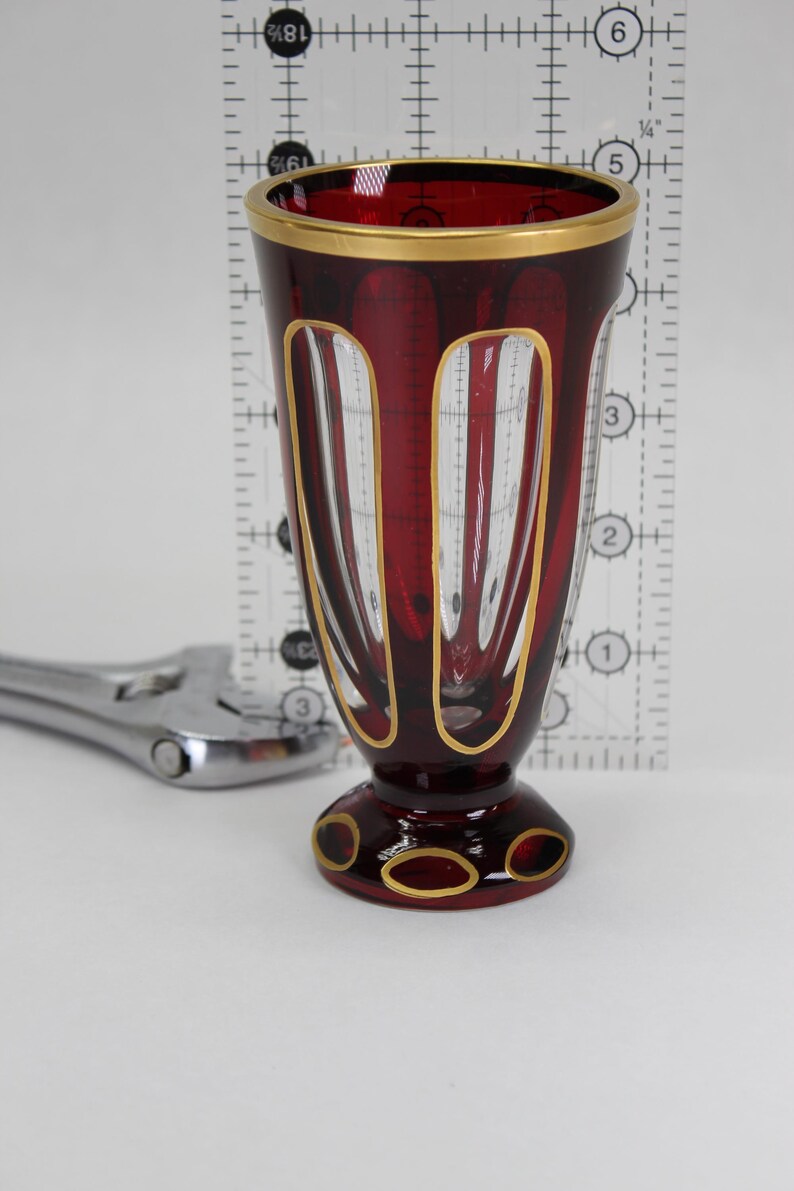 🏛️ Bohemian Craftsmanship – Likely of Czech origin, this vase reflects a tradition where artisans layered vivid color over clear crystal, then cut away to create dramatic designs. Its flat-ground base and substantial weight give it a presence far beyond its size.