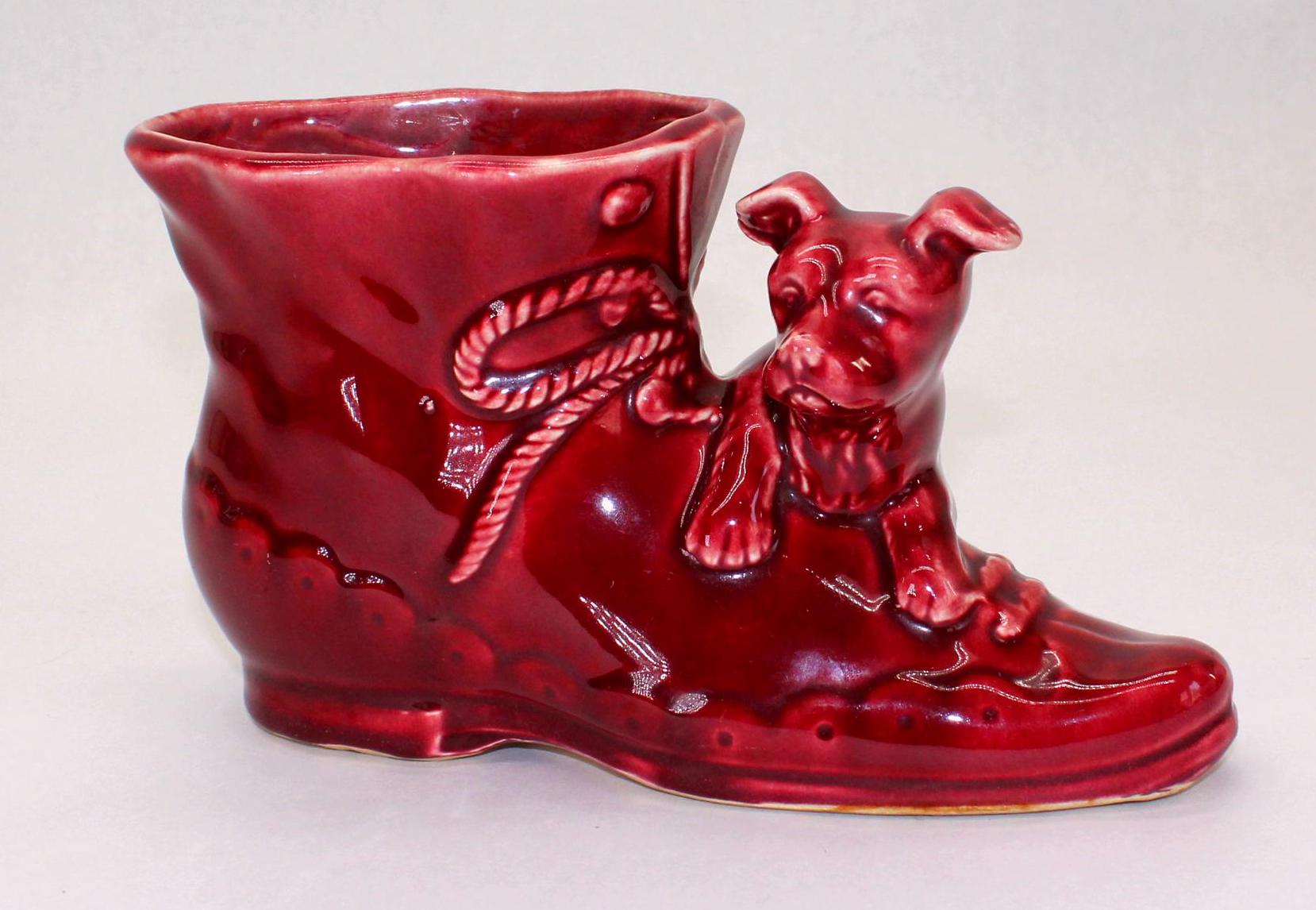 VINTAGE Shawnee Pottery Dog-on-Shoe Planter