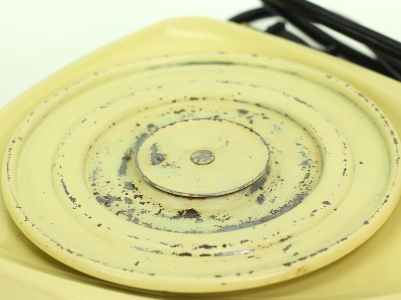 This Mixmaster is in excellent, fully rebuilt condition. The original Buttercream Yellow paint is in amazing shape, with only minor signs of wear consistent with its age. Mechanically, it is perfect thanks to a professional rebuild.