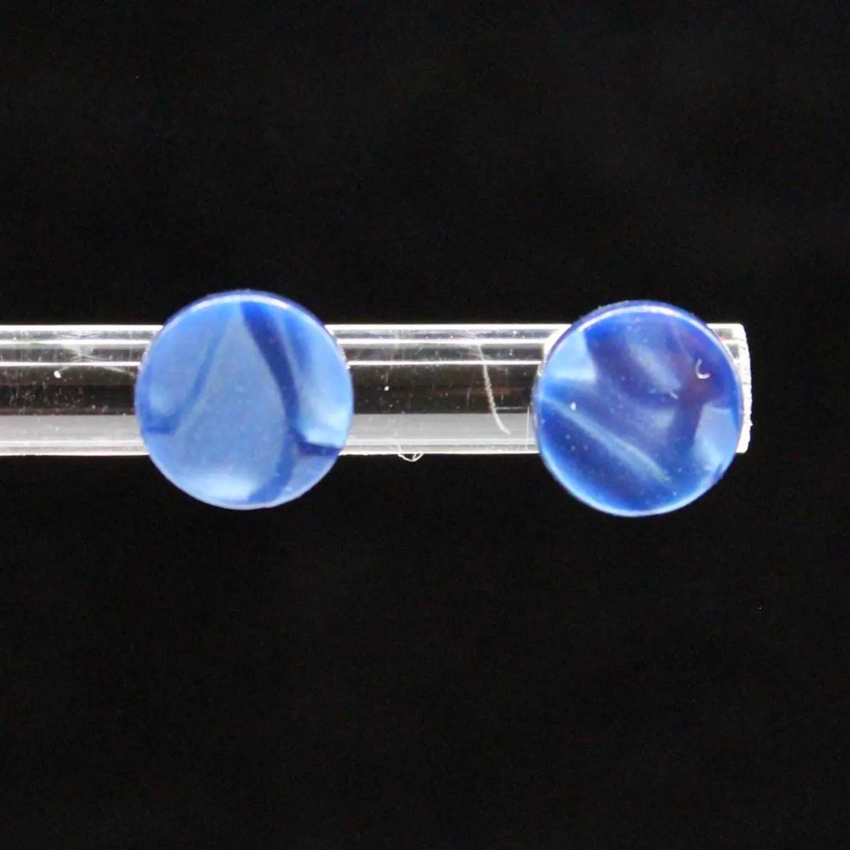 VINTAGE Swirl Button Earrings. Blue Lucite Studs From The 1970s.