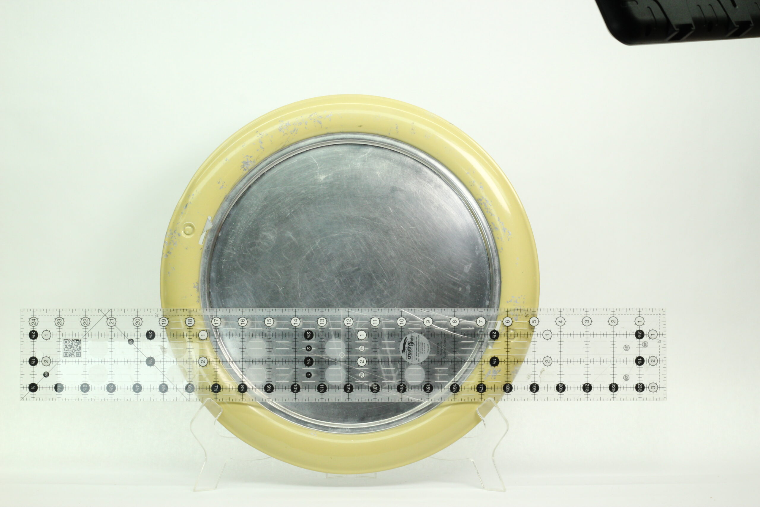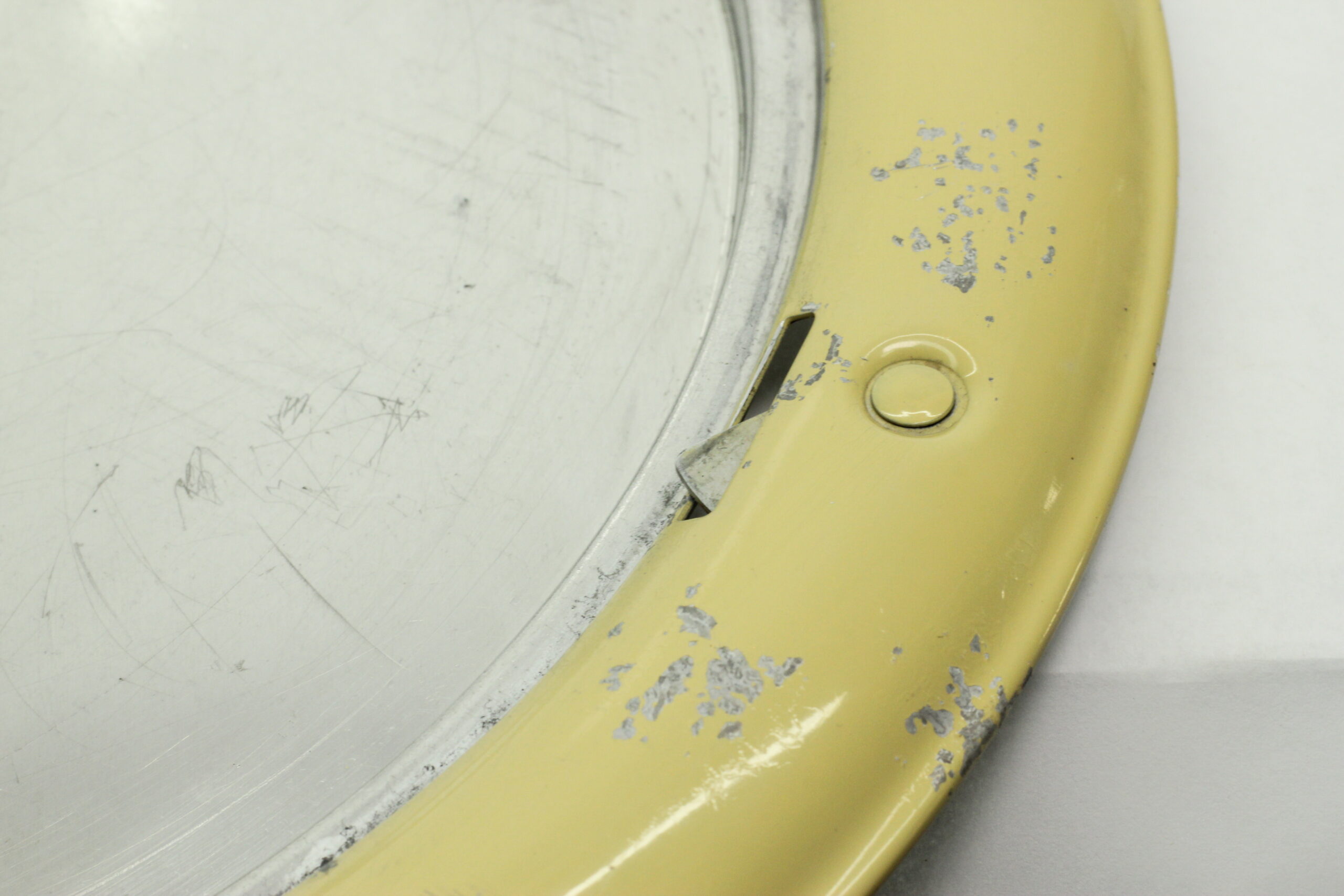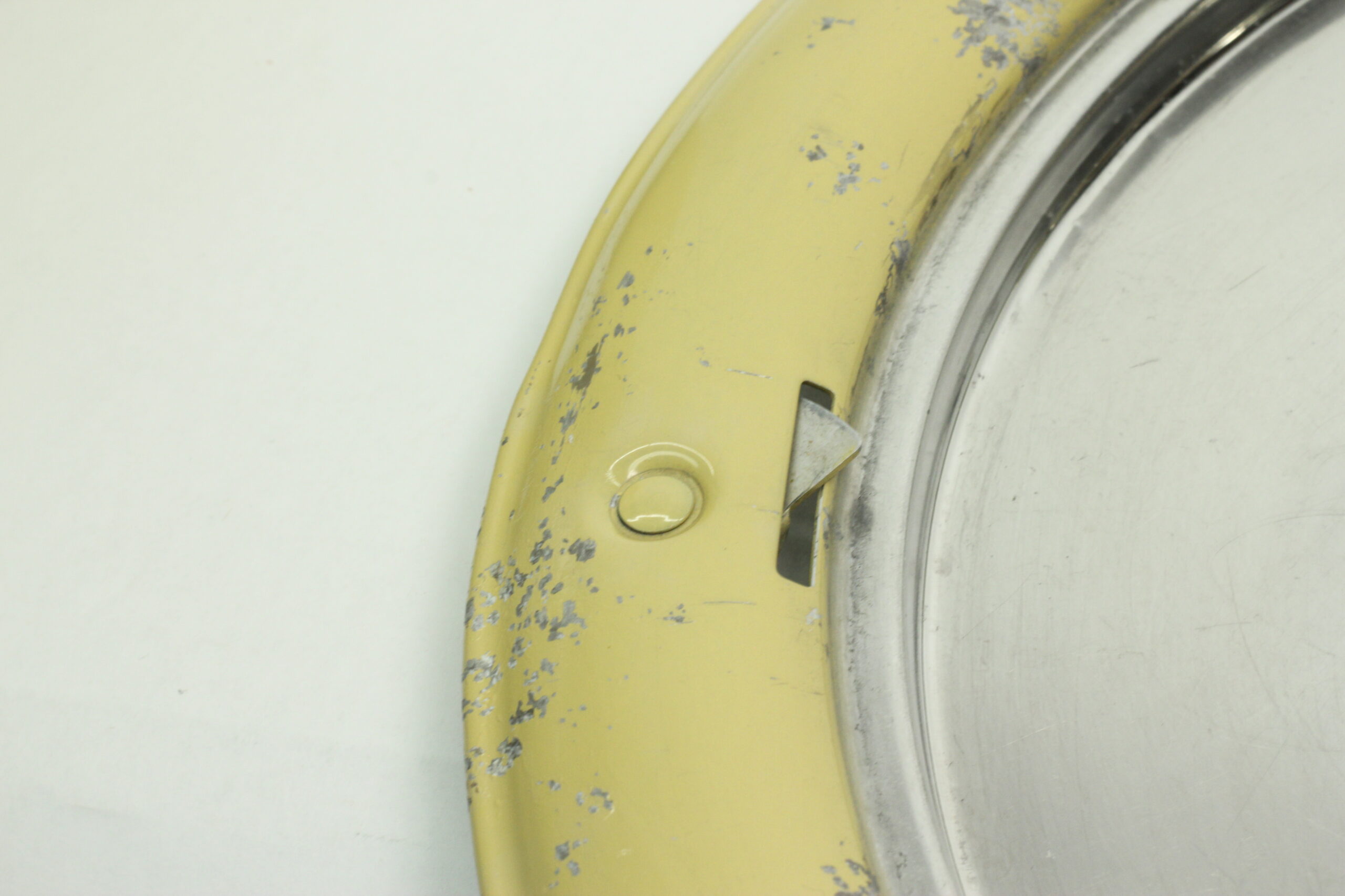 The dome is in excellent vintage condition with no significant dents or scratches. The base tray shows some paint chips consistent with age and normal use. Any loose paint has been carefully removed, and the finish has been stabilized with a protective coat of crystalline wax to help prevent further wear.